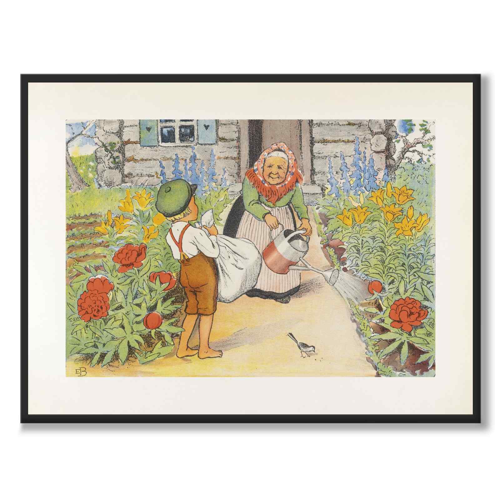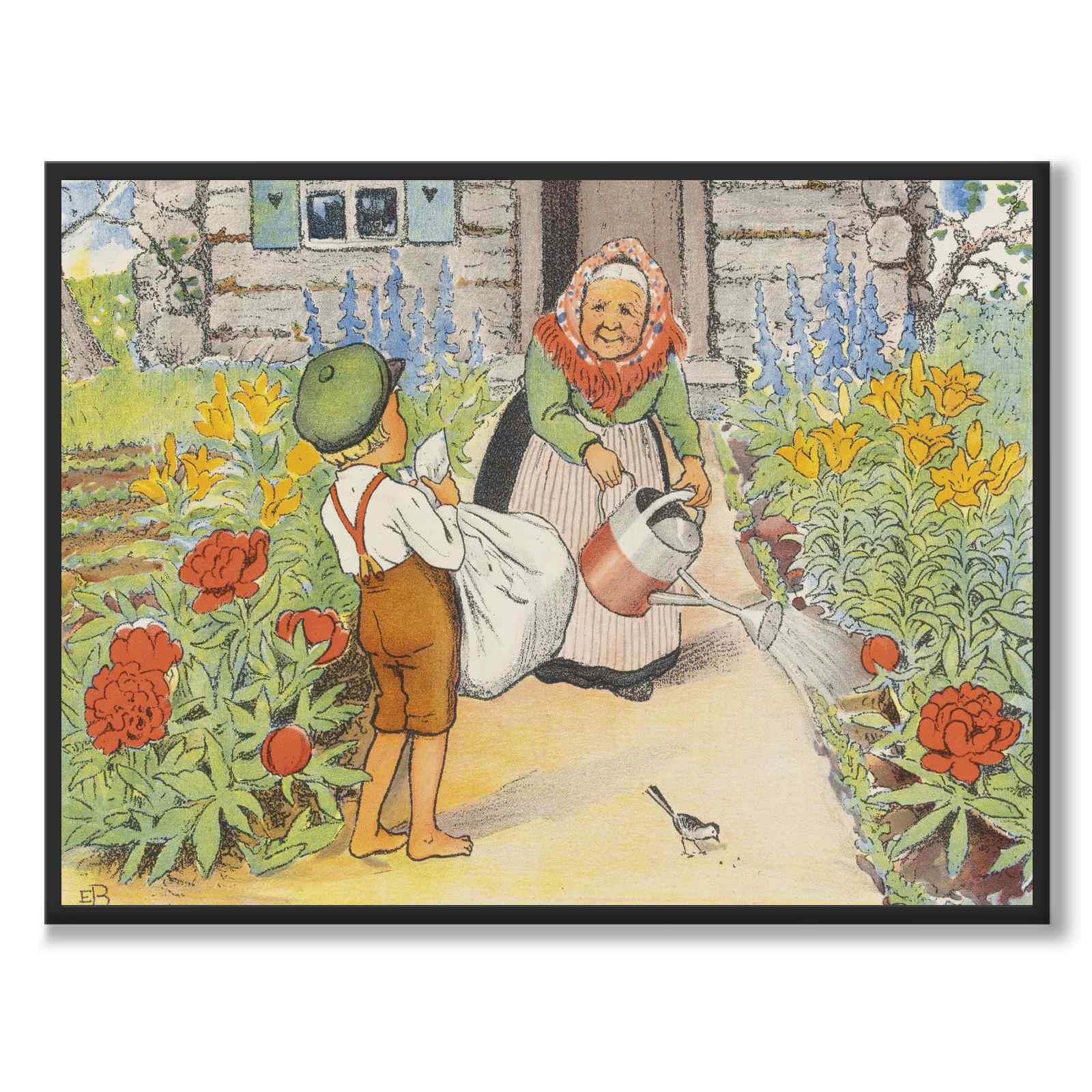 Poster with a beautiful illustration from Elsa Beskow's children's book "Pelle's New Clothes" which was first published in 1907.