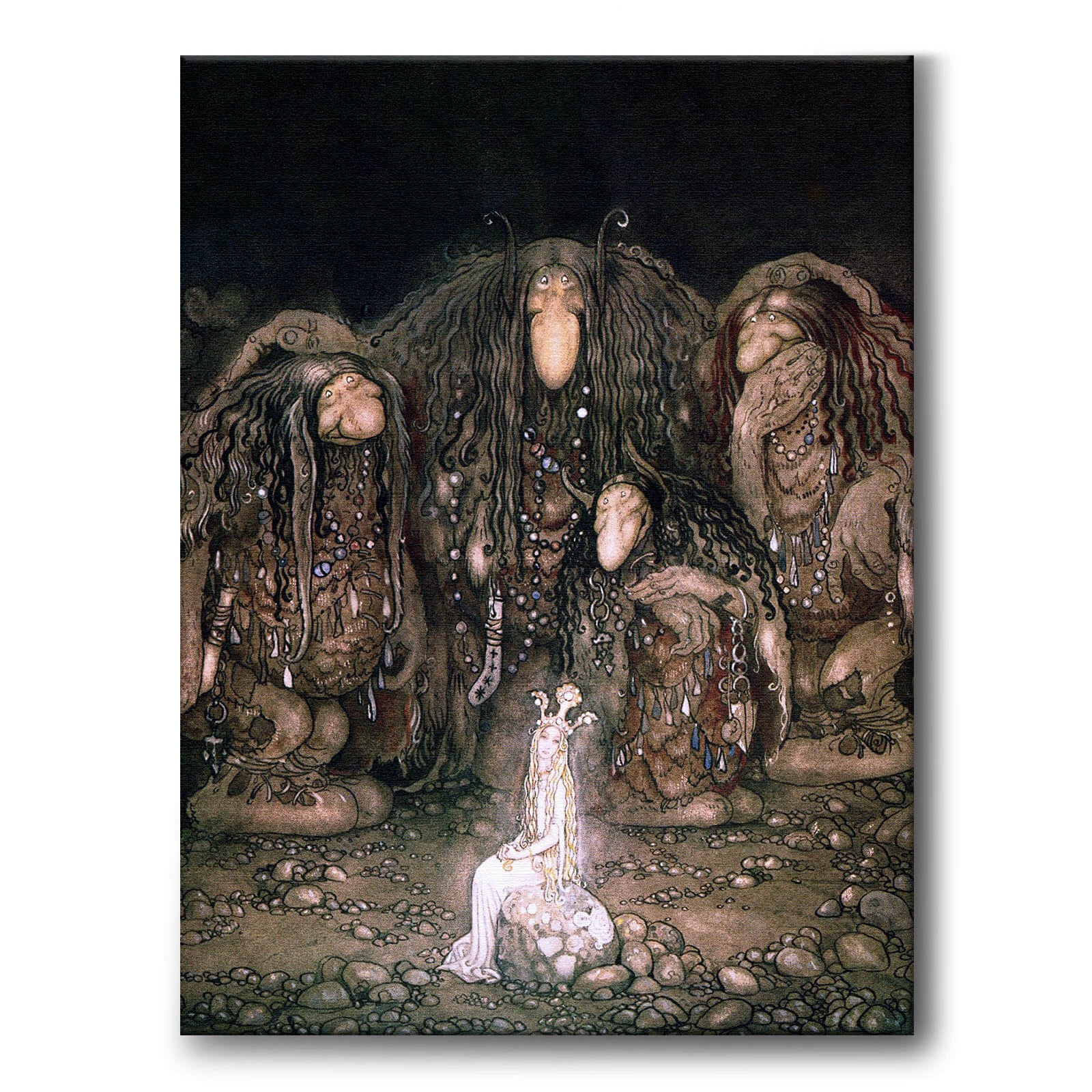 John Bauers tragiske og utidige død i 1918, i en båtulykke som også tok livet av familien hans, brakte en brå slutt på hans blomstrende karriere. Til tross for dette fortsetter kunstnerskapet hans å leve videre og inspirere. Denne kolleksjonen, trykt på høykvalitets lerretsstoff fra Hahnemühle , er ikke bare en hyllest til Bauers kunst, men også en feiring av hans liv og arv. Ideell for kunstelskere, samlere og alle som setter pris på en dyp forbindelse mellom kunst og nordisk folklore.