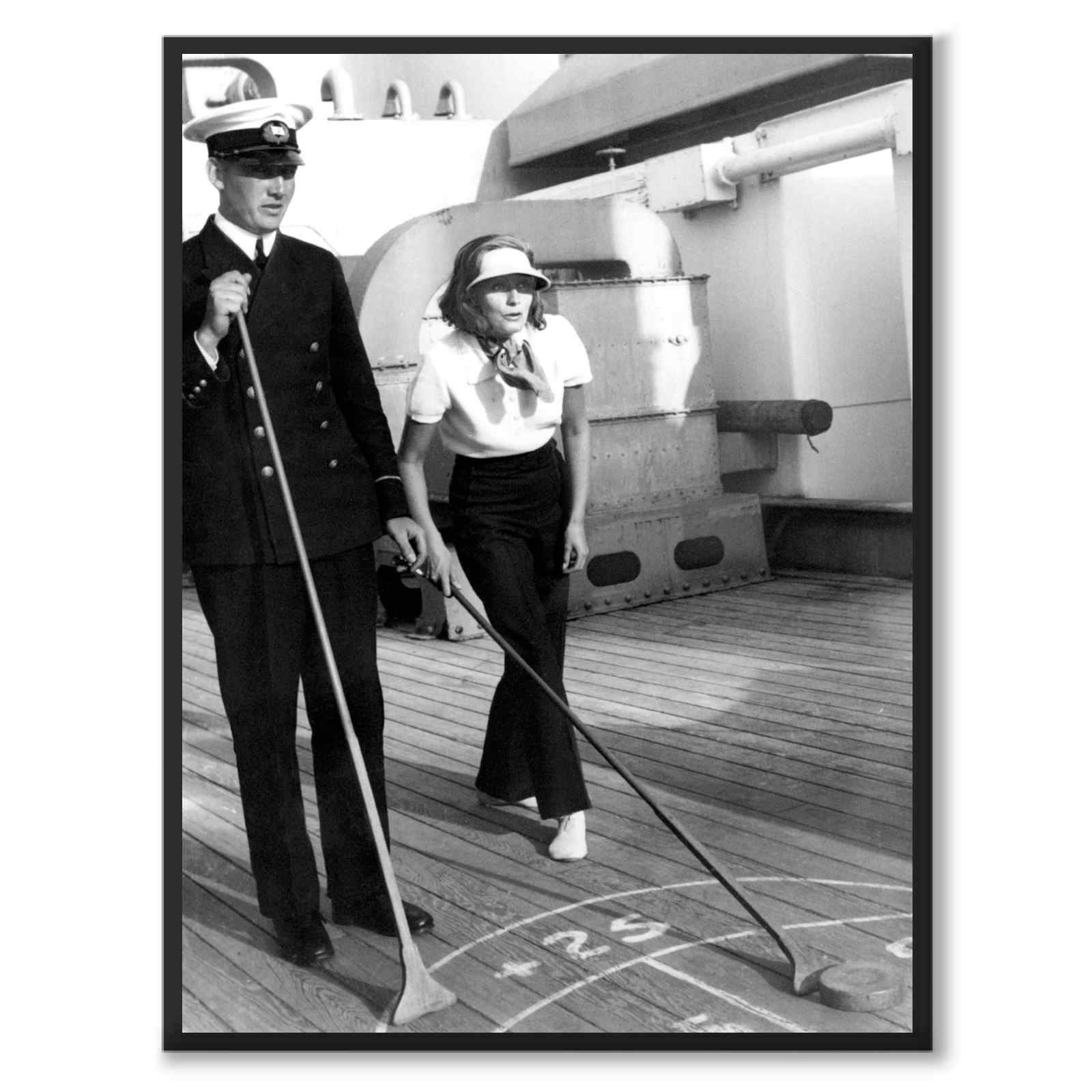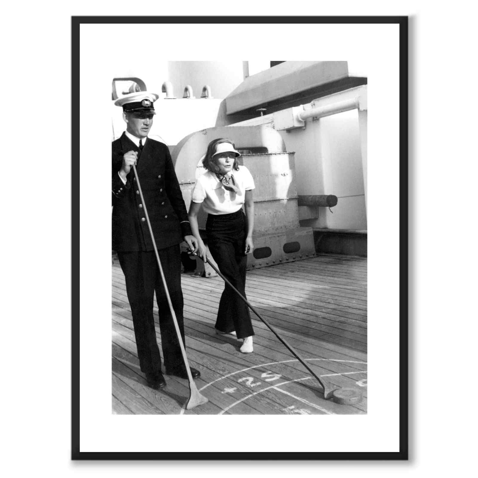 Greta Garbo spiller shuffleboard om bord på et av Svenska Amerika Liniens skip.