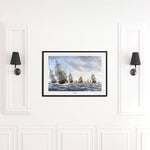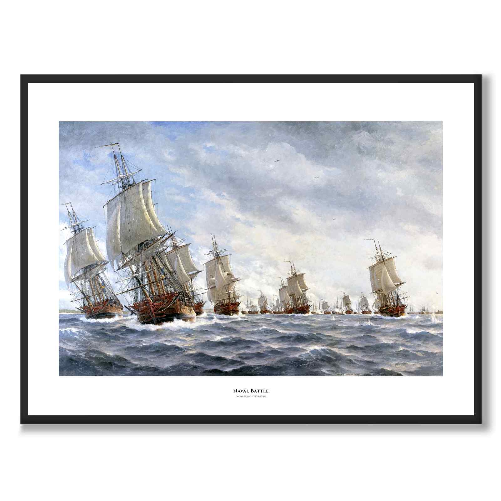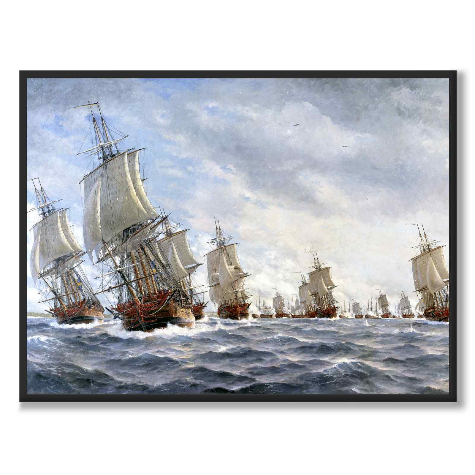 Plakat med et maleri som viser sjøslaget ved Reval, nå kalt Tallinn, og som viser den svenske flåtens avgang etter et angrep på en russisk skvadron. Slaget fant sted 13. mai 1790 under Gustav IIIs russiske krig hvor Russland beseiret Sverige. Maleriet ble malt av kunstneren Jacob Hägg i 1919.