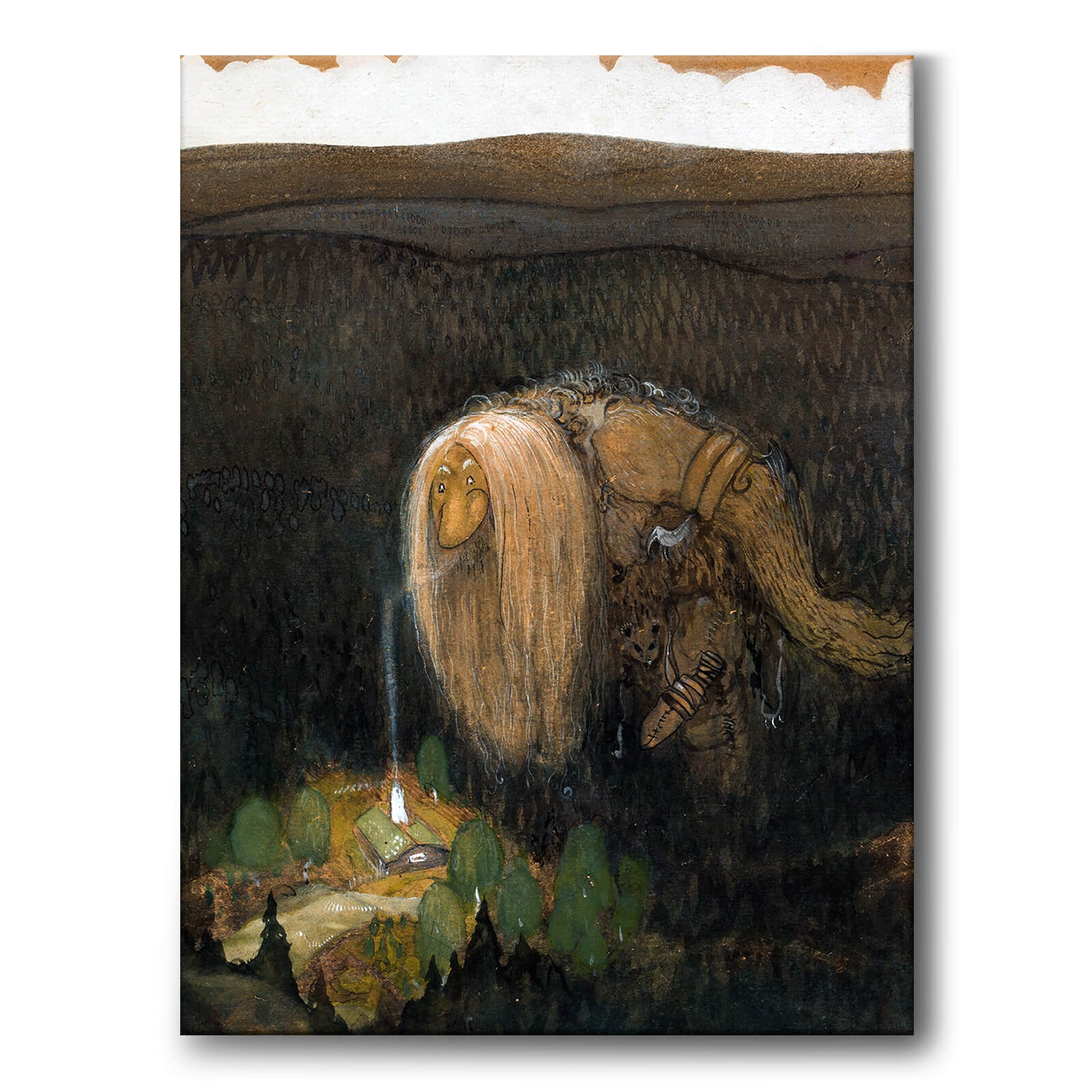 Det var kunstneren John Bauer som ga oss bildet av troll som stygge med store neser. På bildet bøyer trollet seg over det lille våningshuset i skogen og snuser med sin enormt lange nese.