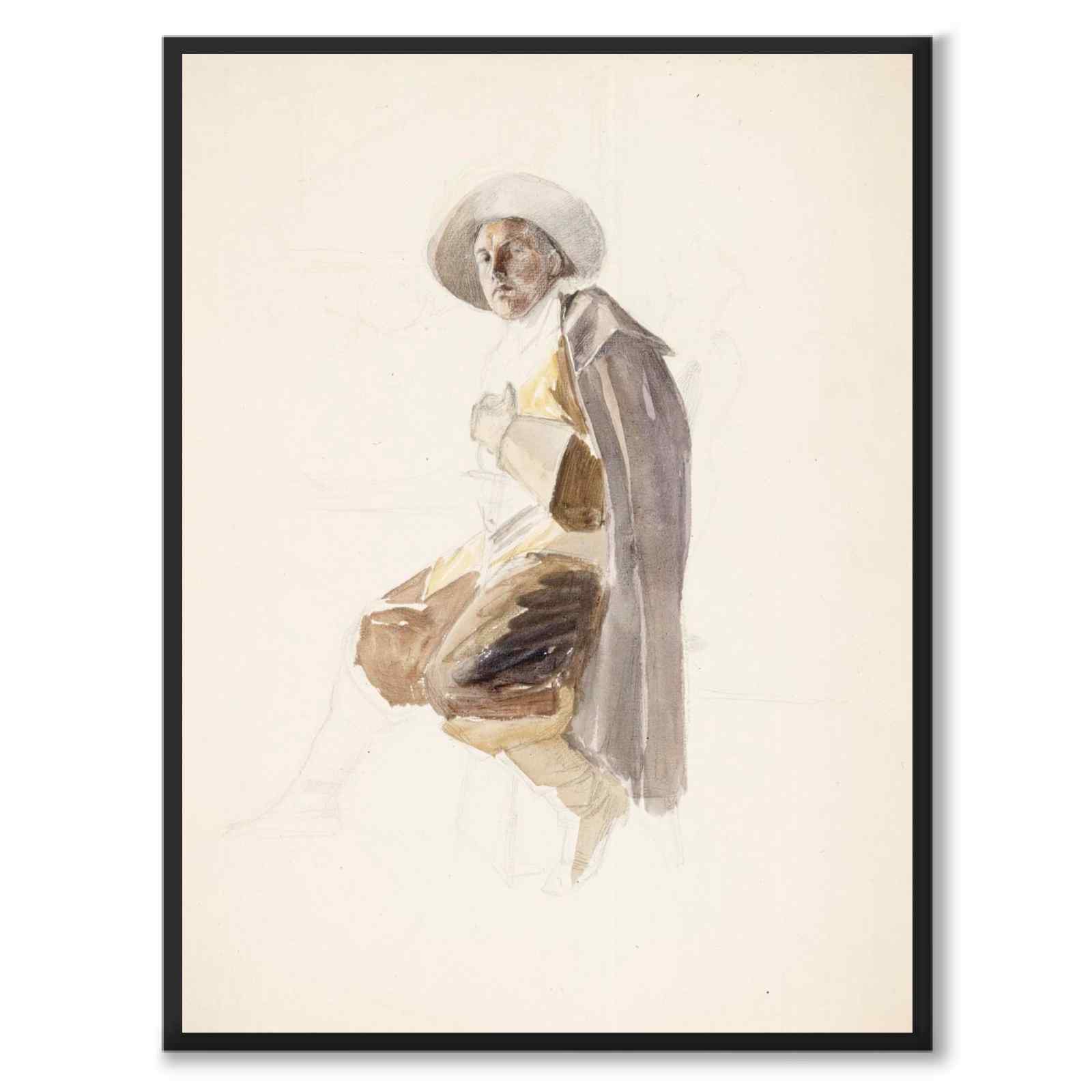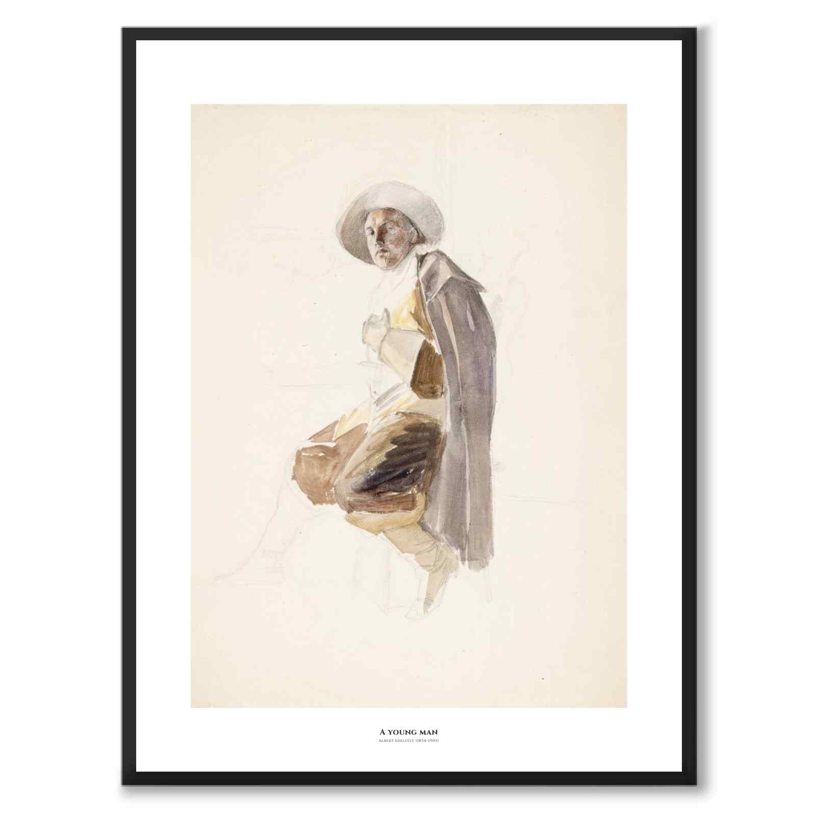 Plakat med det vakre maleriet En ung mann av Albert Edelfelt fra slutten av 1800-tallet. Bildet forestiller en mann med frakk og hatt, som sitter med blikket mot betrakteren.
