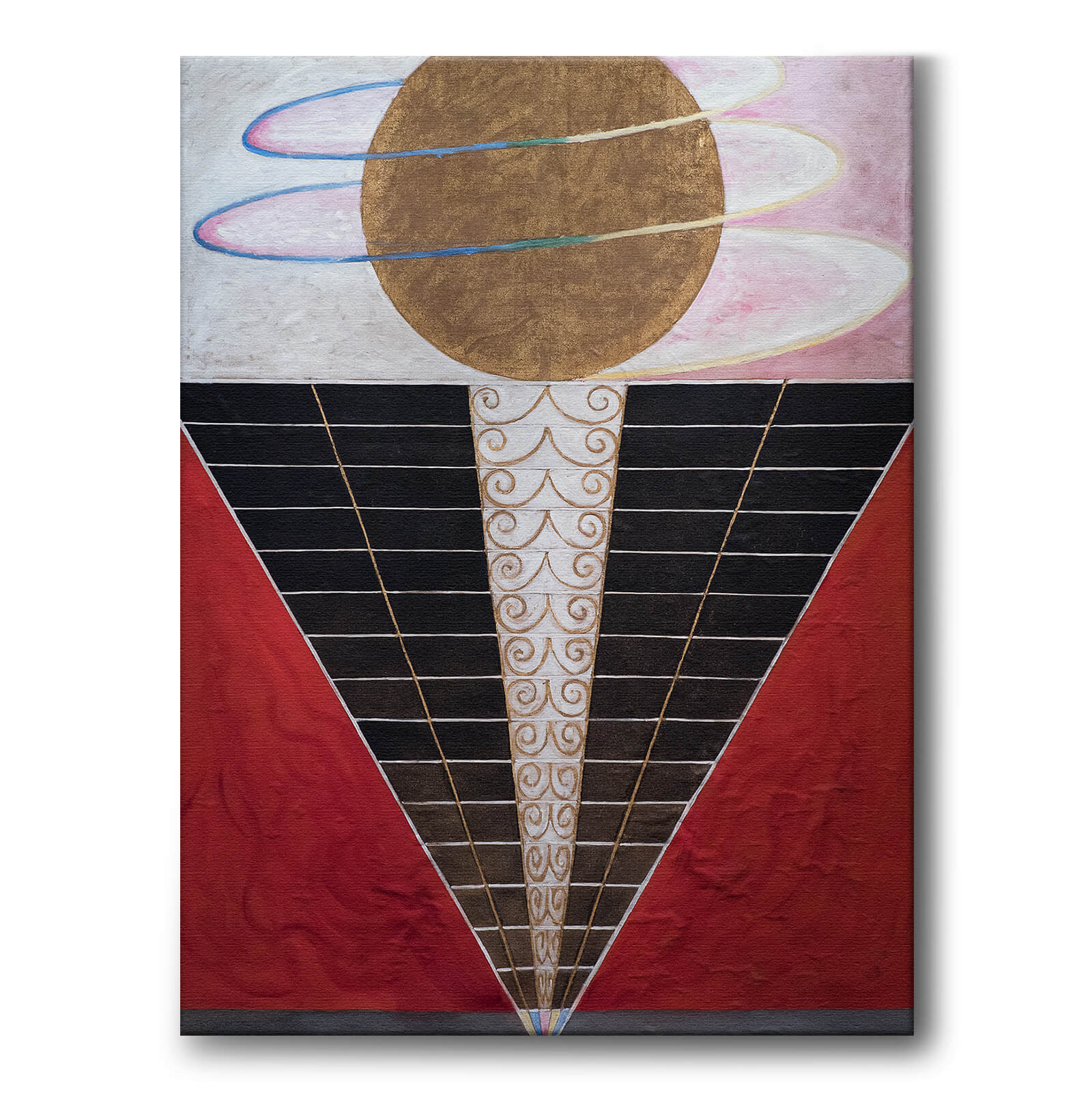 Lerret med maleriet Altertavle nr. 2 opprettet i 1915 av Hilma af Klint - en av Sveriges mest kjente artister. Maleriet er ett i det hele Malerier til tempelet og den omvendte trekanten i maleriet er ment å symbolisere nedstigningen fra guddommelig enhet til mangfoldet av den materielle verden.