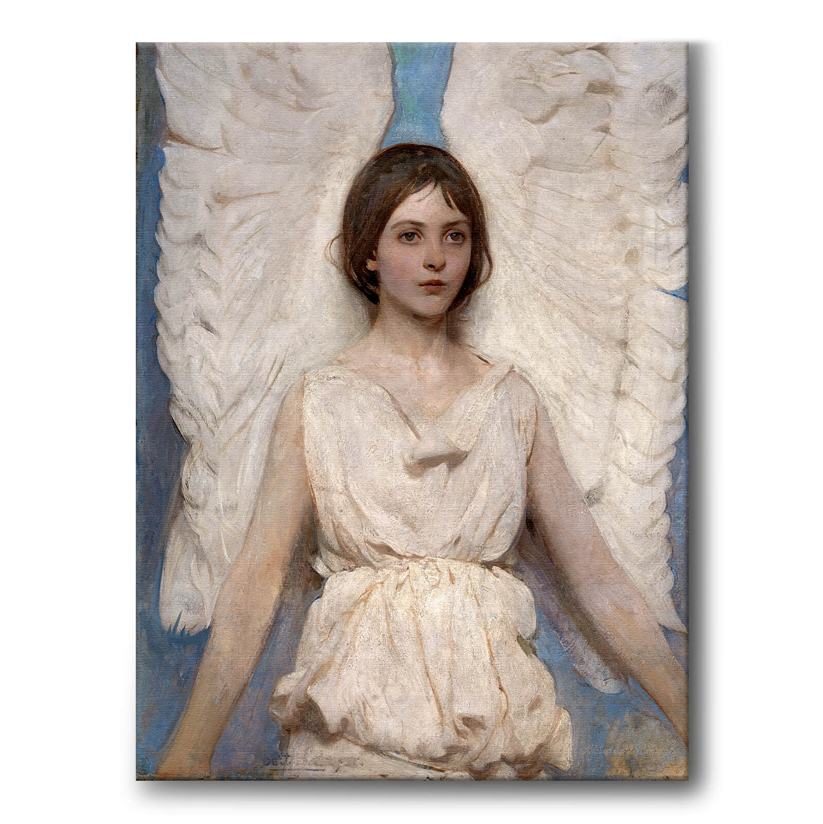 Abbott Handerson Thayer er i dag kjent for sine eteriske engler, portretter av kvinner og barn, landskap og delikate blomstermalerier. Dette lerretstrykket av maleriet Engelen ble laget av Handerson Thayer i 1887.