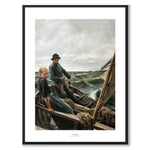 Plakat med det vakre maleriet At Sea av Albert Edelfelt fra 1883. Maleriet viser en ung jente og en mann som seiler på et stormfullt hav.