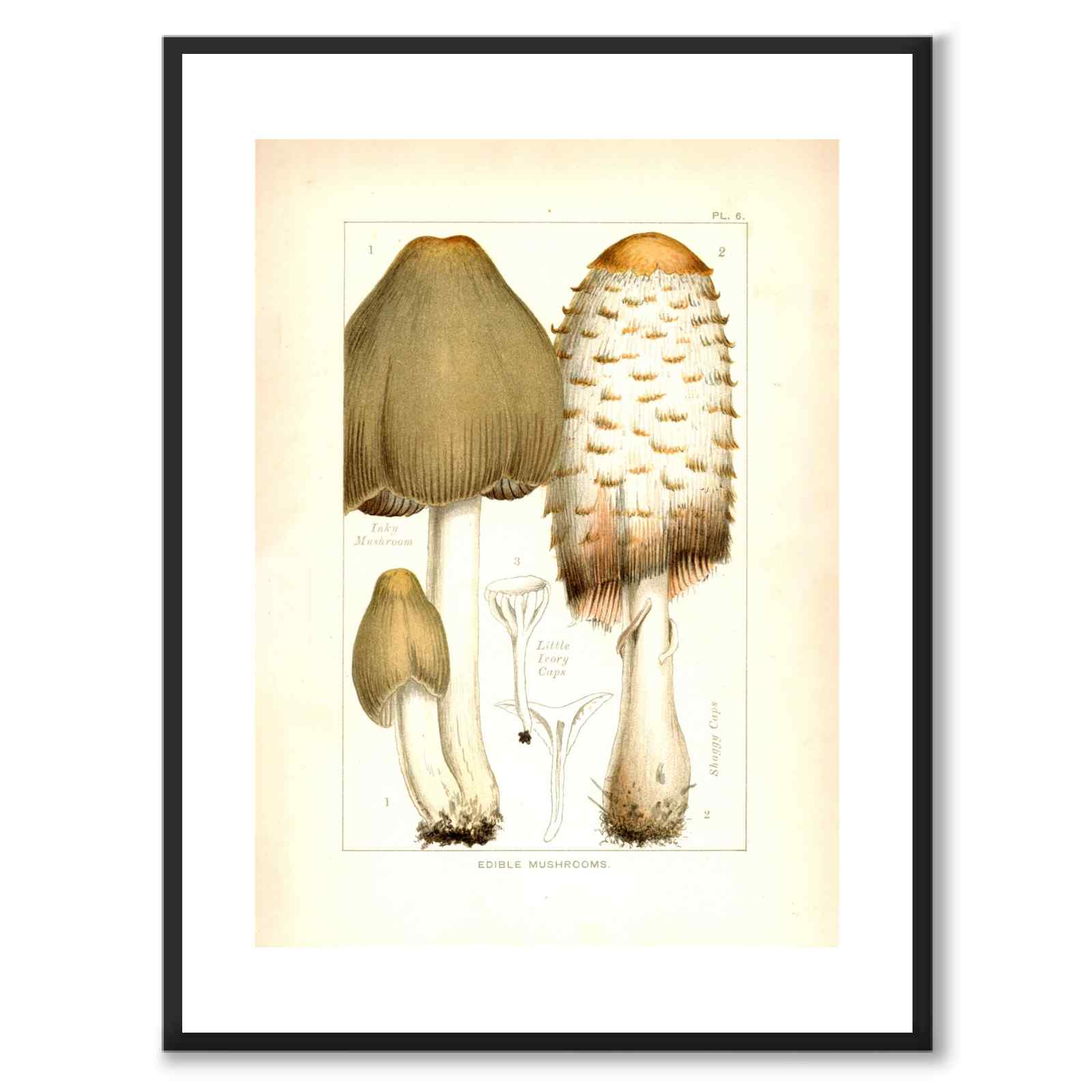 Plakat med en vakker, klassisk illustrasjon fra boken Sveriges ätliga och giftiga Svampar, som ble utgitt i serier mellom 1860-1866 av Elias Fries.