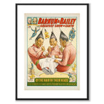 Plakat med en vintagereklame for et av de mest kjente amerikanske sirkusene i verden på slutten av 1800-tallet og begynnelsen av 1900-tallet, Barnum & Baileys største show på jorden.