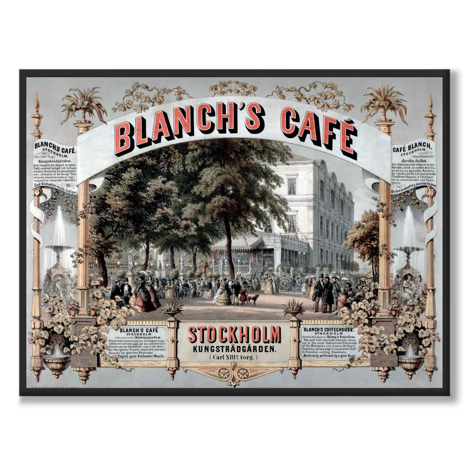Reklameplakat for den berømte Blanch's Café i Kungsträdgården, Stockholm på 1870-tallet.