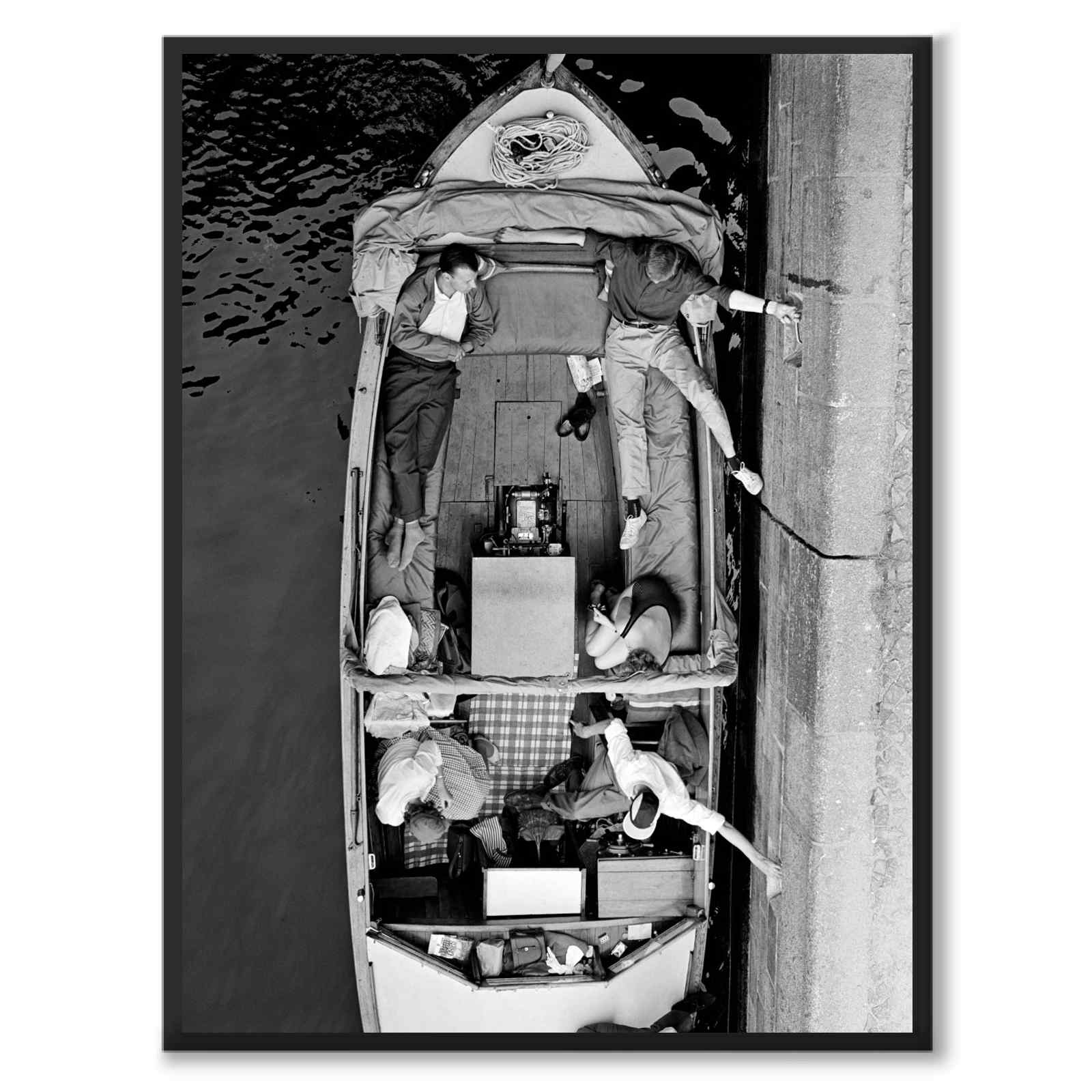 Et nydelig bilde av en gruppe ungdommer som venter på å bli tatt med på en båttur i en kanal et sted i Sverige på 60-tallet.