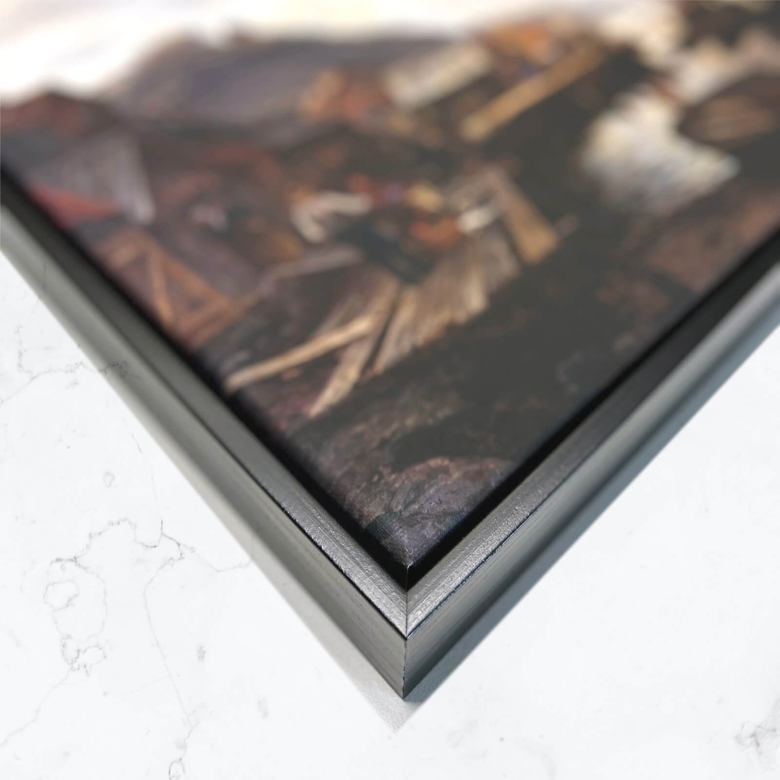 For de som foretrekker en sofistikert tone, presenterer vi vår eksklusive float-stil lerretsramme med en elegant svart finish. Denne dristige og moderne innfatningen vil gjøre et statement i ethvert hjem, og gi et uttrykksfullt preg til kunstverket ditt.