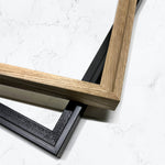 Som med eiken, er hver sorte ramme produsert med stor omhu av teamet vårt. Rammene er satt sammen med presisjon for hånd, noe som sikrer at de oppfyller våre høye kvalitetsstandarder. Metallhengere er gitt på baksiden for fleksibel oppheng, enten vertikalt eller horisontalt.