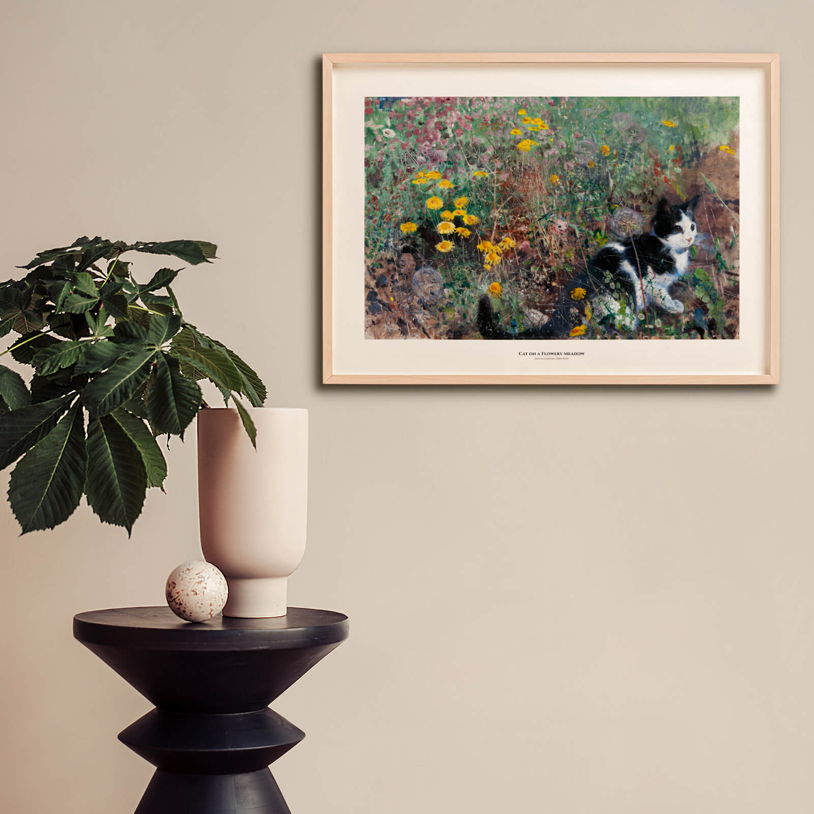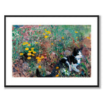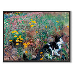 Maleri av Bruno Liljefors fra 1887 som viser en svart og hvit katt på en blomstrende sommereng.