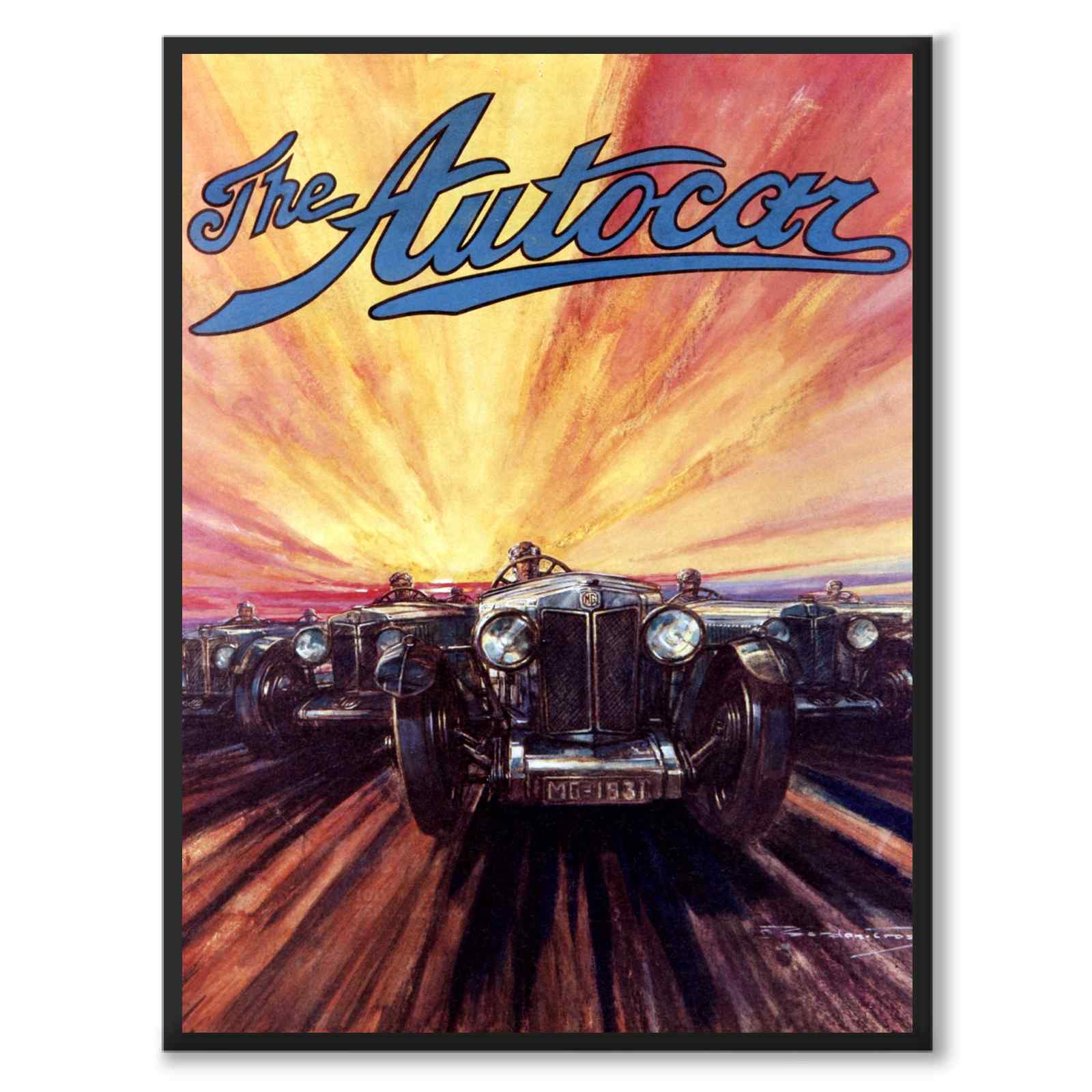 Denne illustrasjonen er et kjent forsidebilde fra The Autocar, et britisk bilmagasin som var veldig populært på begynnelsen og midten av 1900-tallet. På forsiden ser vi flere biler som kjører i høy hastighet, med en himmel i røde og gule fargetoner. Øverst står det også «The Autocar» i blå tekst.