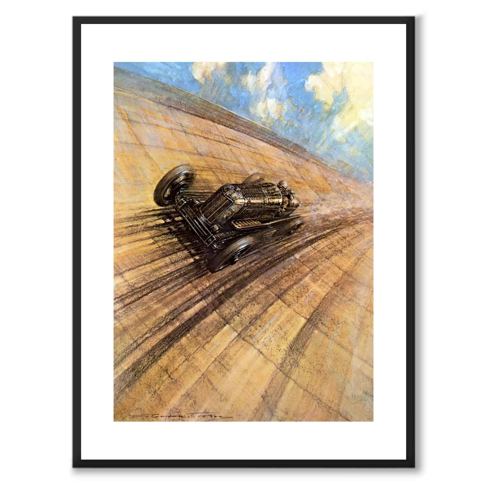 Plakat med illustrasjonen «Crosby», et verk av Frederick Gordon Crosby (1885–1943), en britisk kunstner kjent for sine dynamiske og dramatiske skildringer av tidlig motorsport.