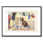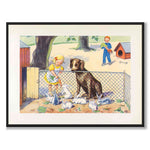 Plakat med illustrasjon fra Elsa Beskows bildebok "Talentfulle Annika" som kom ut i 1941. Boken handler om Annika, en snill og talentfull jente som hjelper til med å passe kua Majros.