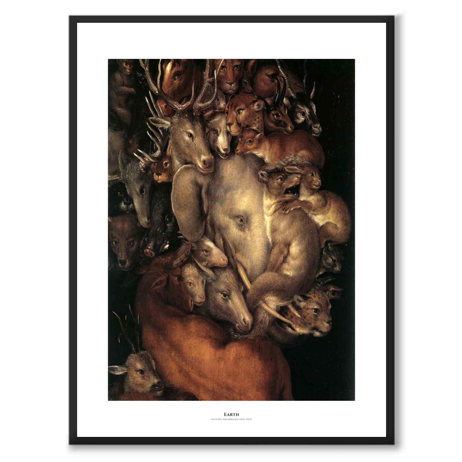 Maleriet er fra 1566 og er et portrett av en menneskeskikkelse, der dyr som hjort, løver og sauer er nøye arrangert for å danne ansiktstrekk. «Jorden» er En del av Elements-serien.