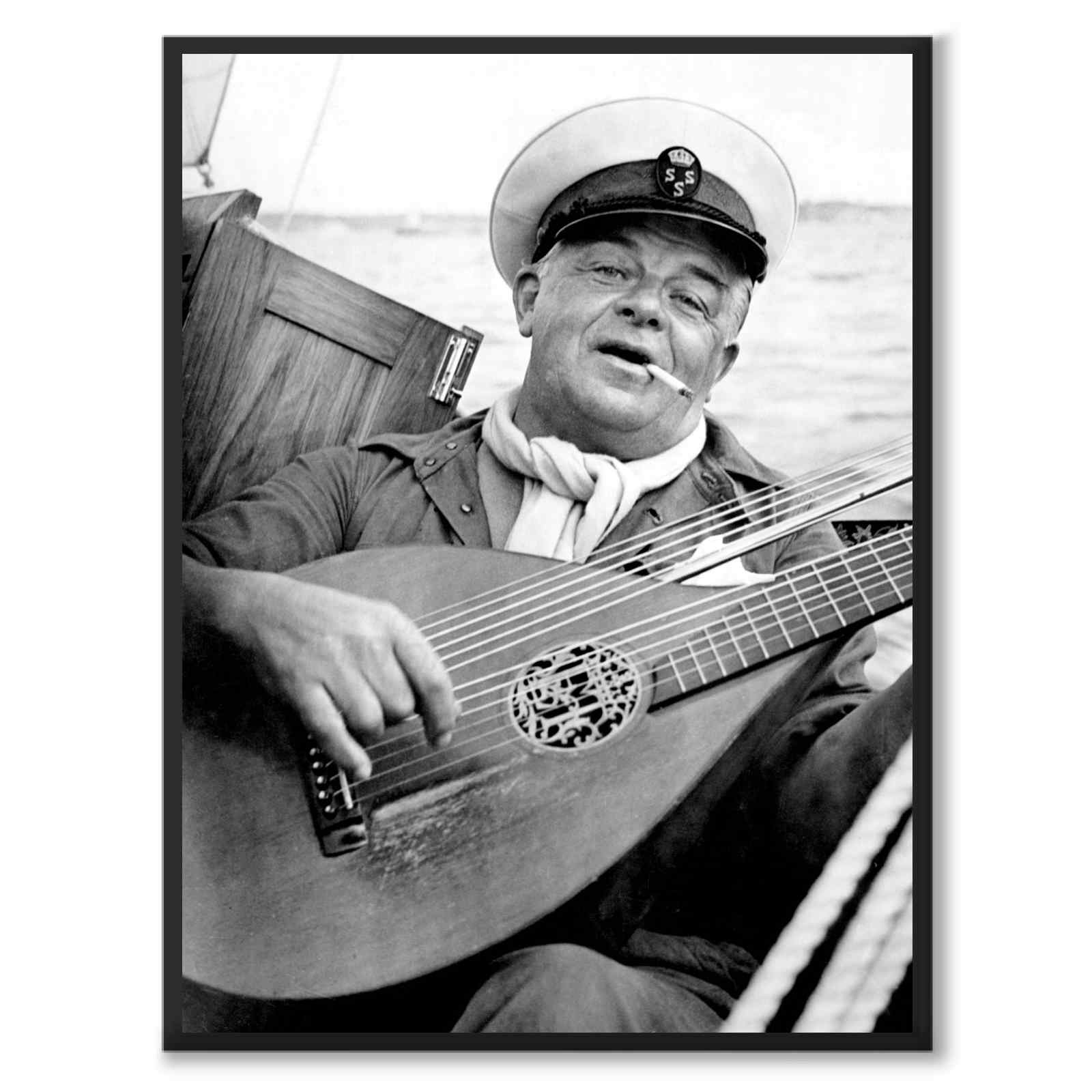 Plakat med bilde fra 1943 av Evert Taube (1890-1976) som er en av Sveriges mest kjente trubadurer gjennom tidene. Han var også en anerkjent forfatter, komponist og kunstner. Det mange ikke vet er at Taube også var en argentinsk statsborger og en navnløs adelsmann i Taube-familien.