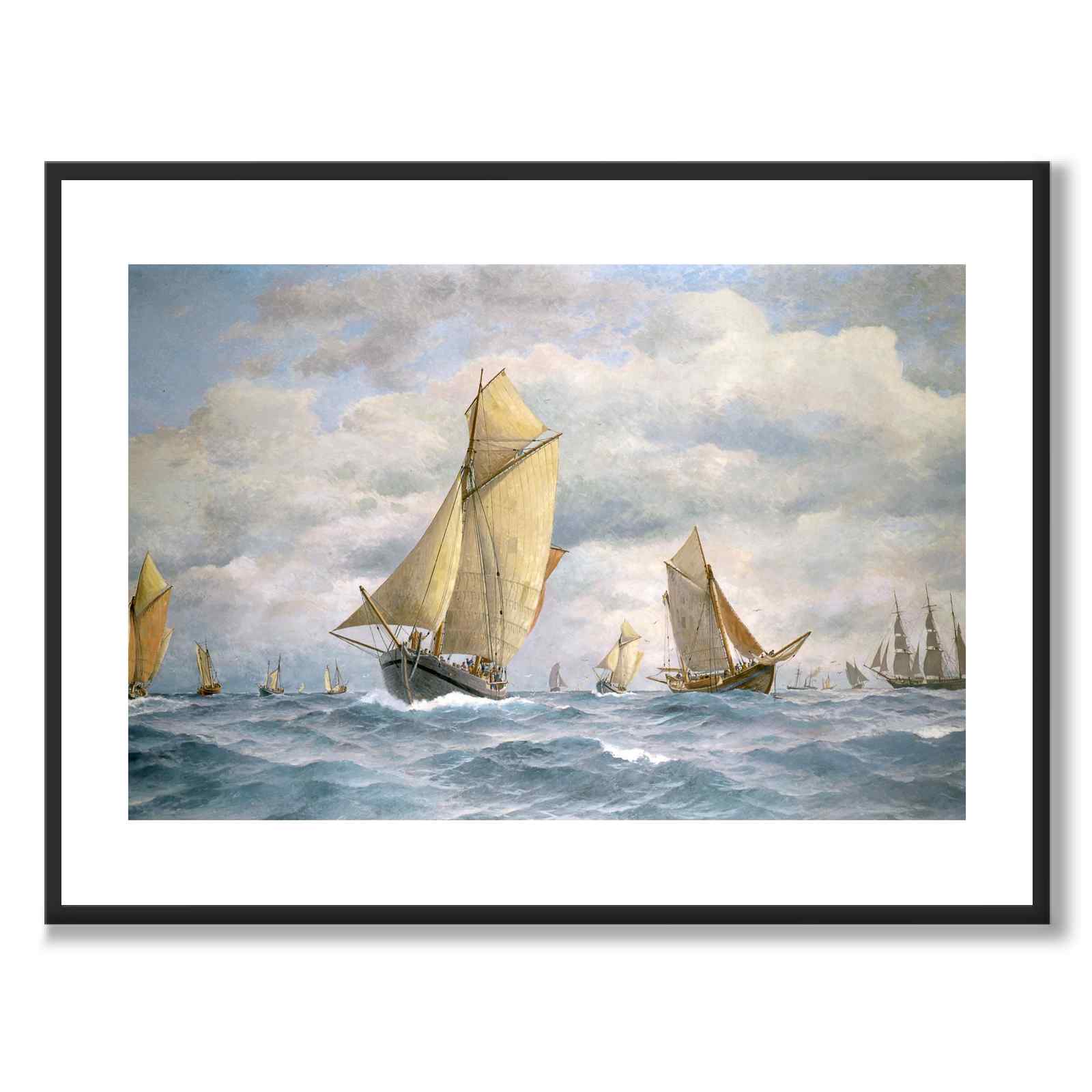 Plakat med et vakkert oljemaleri av en bankfiskeflåte fra 1860-tallet. Maleriet ble laget i 1921 av Jacob Hägg for Jubileumsutstillingen i Gøteborg i 1923.