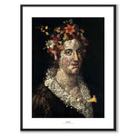 Plakat med maleriet «Flora» av den italienske renessansemaleren Giuseppe Arcimboldo (1527–1593), som er kjent for sine fantasifulle portretter der han bruker gjenstander som frukt, blomster og bøker for å gjenskape ansikter.