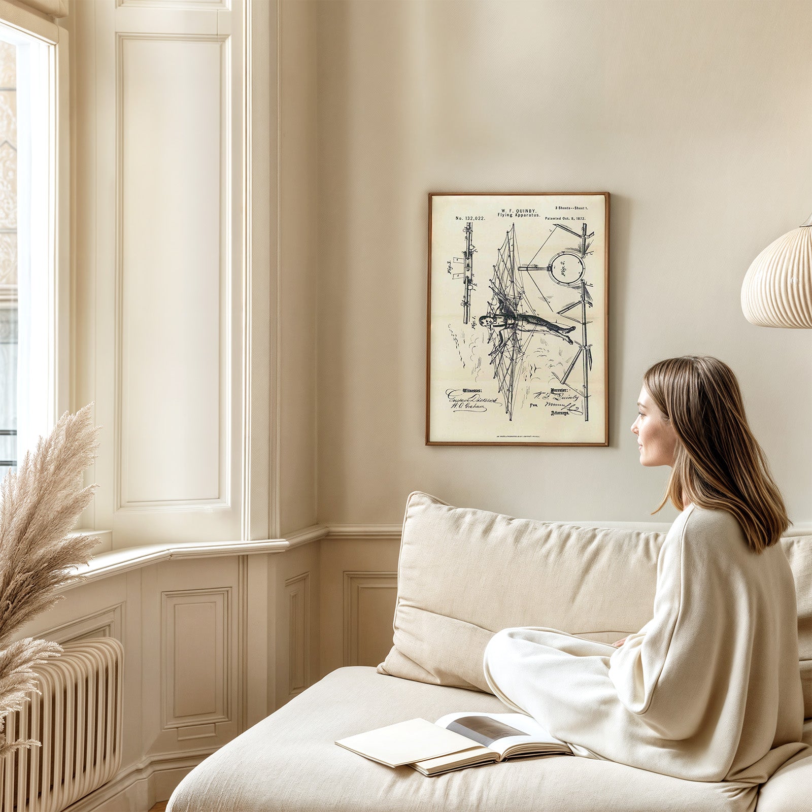 Plakat av en patenttegning datert 8 oktober 1872 for et "Flying Apparatus" designet av WF Quinby.