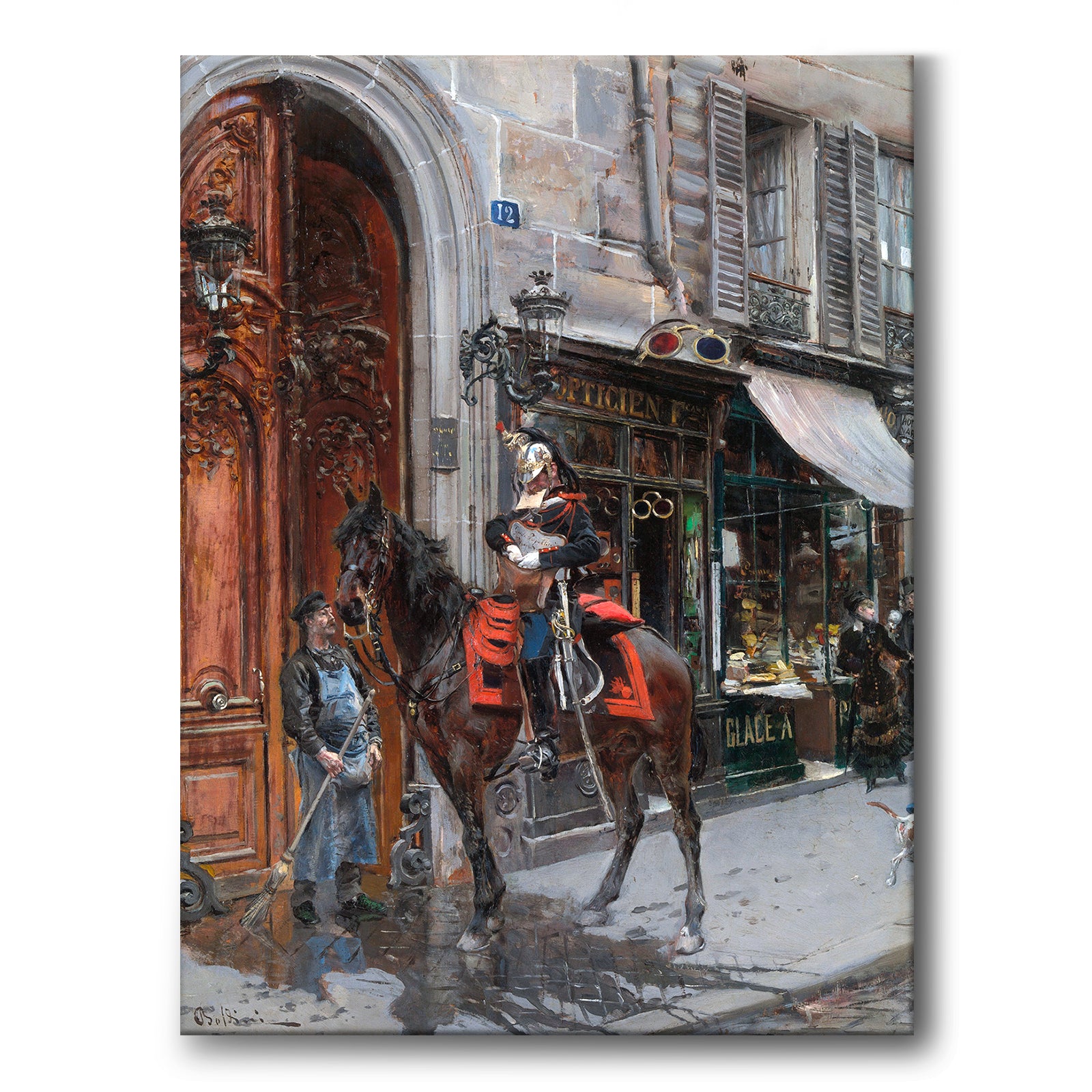Lerret med et vakkert maleri fra 1879 av den italienske kunstneren Giovanni Boldini. Verket heter The Dispatch-Bearer . På bildet ser vi en soldat på en gate i Paris. På soldatens bag kan sees inskripsjonen " Garde Républicaine ", fransk for den republikanske garde . Inskripsjonen indikerer at soldaten leverer en melding til Paris Municipal Guard. Han har kommet så tidlig at hovmesteren fortsatt holder på å vaske fortauet utenfor porten til en elegant og moderne parisisk bygning. Et par gir hverandre et diskret adjeu til høyre i bildet utenfor optikerbutikken. Et vakkert øyeblikksbilde av Paris på 1800-tallet.