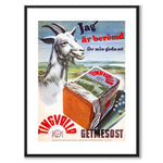 Plakat med årgangsannonse fra Sverige i 1950. Bildet er en fargeannonse for geitost fra Karlstadsortens mejeriförening .