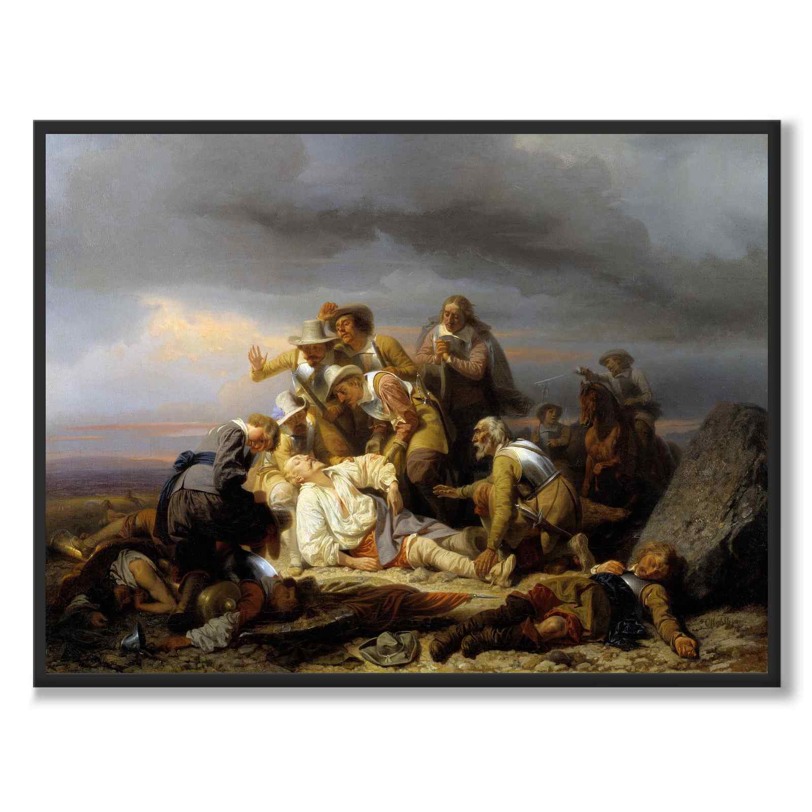 Maleriet skildrer den tragiske hendelsen da svenskekongen Gustav II Adolf blir funnet død på slagmarken etter slaget ved Lützen 6. november 1632. Trettiårskrigen (1618-1648) var en av de mest ødeleggende konfliktene i europeisk historie under tidlig moderne tid. Det var først og fremst en religiøs og politisk konflikt som ble utkjempet i hoveddeler av det tyske området, men som også involverte flere europeiske makter.