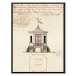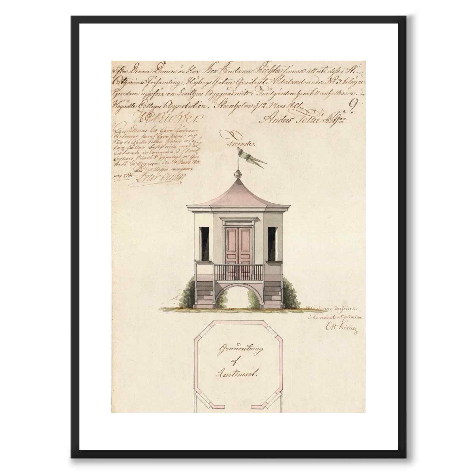 Plakaten viser en tegning av et lysthus av Anders Tottie P:son i 1801. Dette lille, tempellignende lysthuset var ment å stå "midt i hagen" i nabolaget Nederland 3 på Högbergsgatan 3, Stockholm. Bygget ble bestilt av bokbinderen Richter, som ønsket å skape et sjarmerende og elegant sted for rekreasjon i hagen sin.