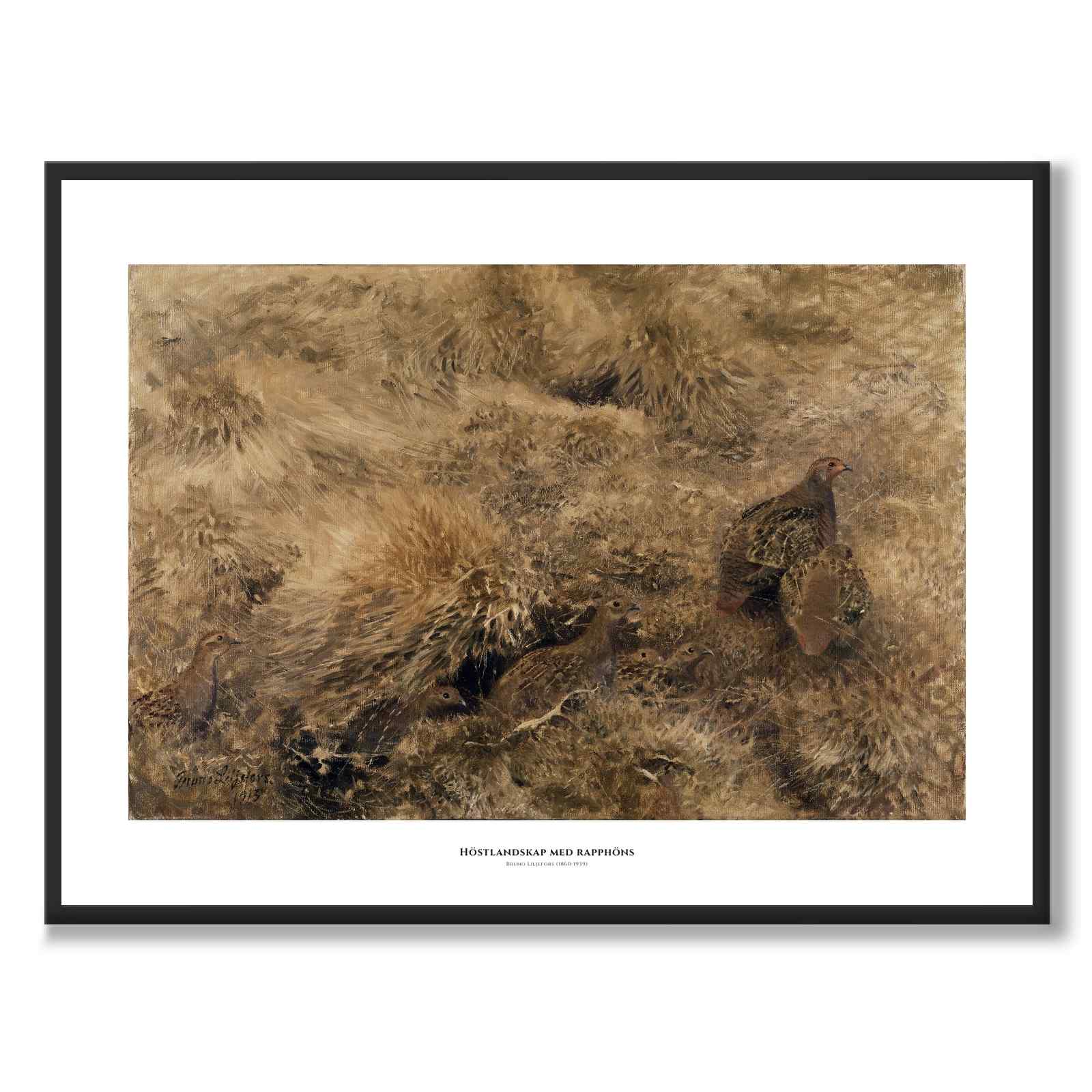 Plakat med motiv av to rapphøns i vakkert høstlandskap. Höstlandskap med rapphöns er et betydelig maleri av den svenske kunstneren Bruno Liljefors og er et utmerket eksempel på Liljefors' dyktighet i å gjengi den svenske naturen og dens dyreliv med stor realisme og følelse.