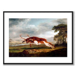Poster featuring the dynamic painting Hound Coursing a Stag by British artist George Stubbs (1724–1806). Known as one of the foremost animal painters of the 18th century, Stubbs became famous for his lifelike depictions of horses, dogs and wild animals.
