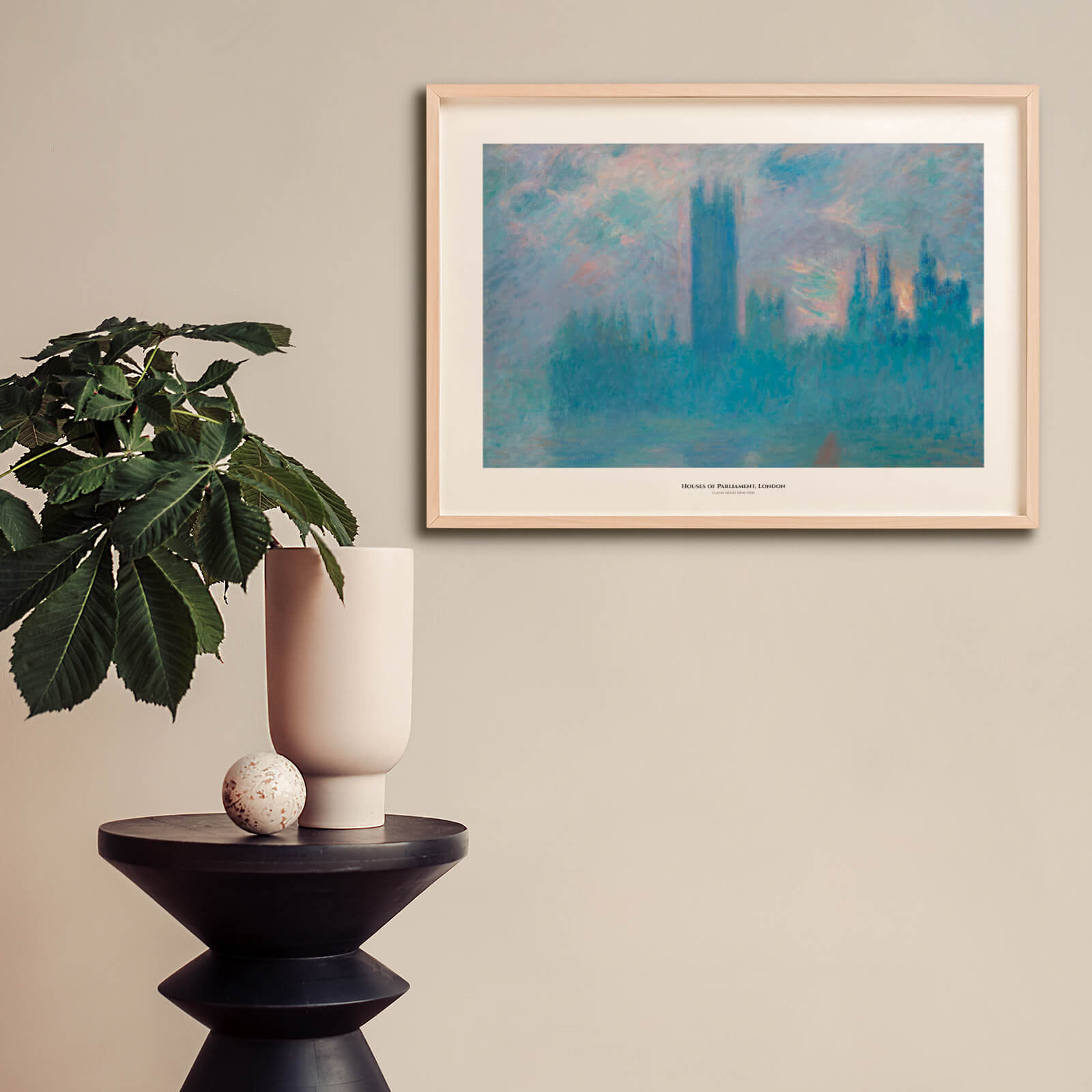 Plakat med maleriet Houses of Parliament, London fra 1900 av Claude Monet. Maleriet viser Stortingshuset på Westminster i London.