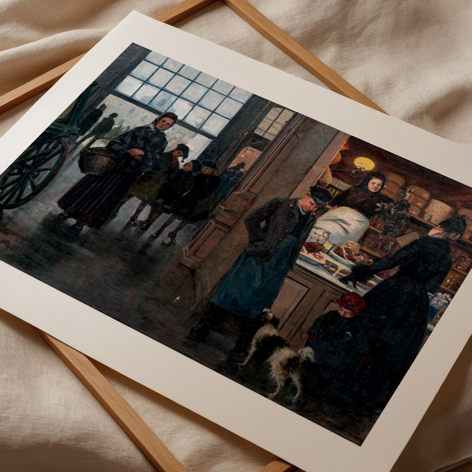 Plakat med maleri "I Hötorgshallen" av Lotten Rönquist fra 1889.
