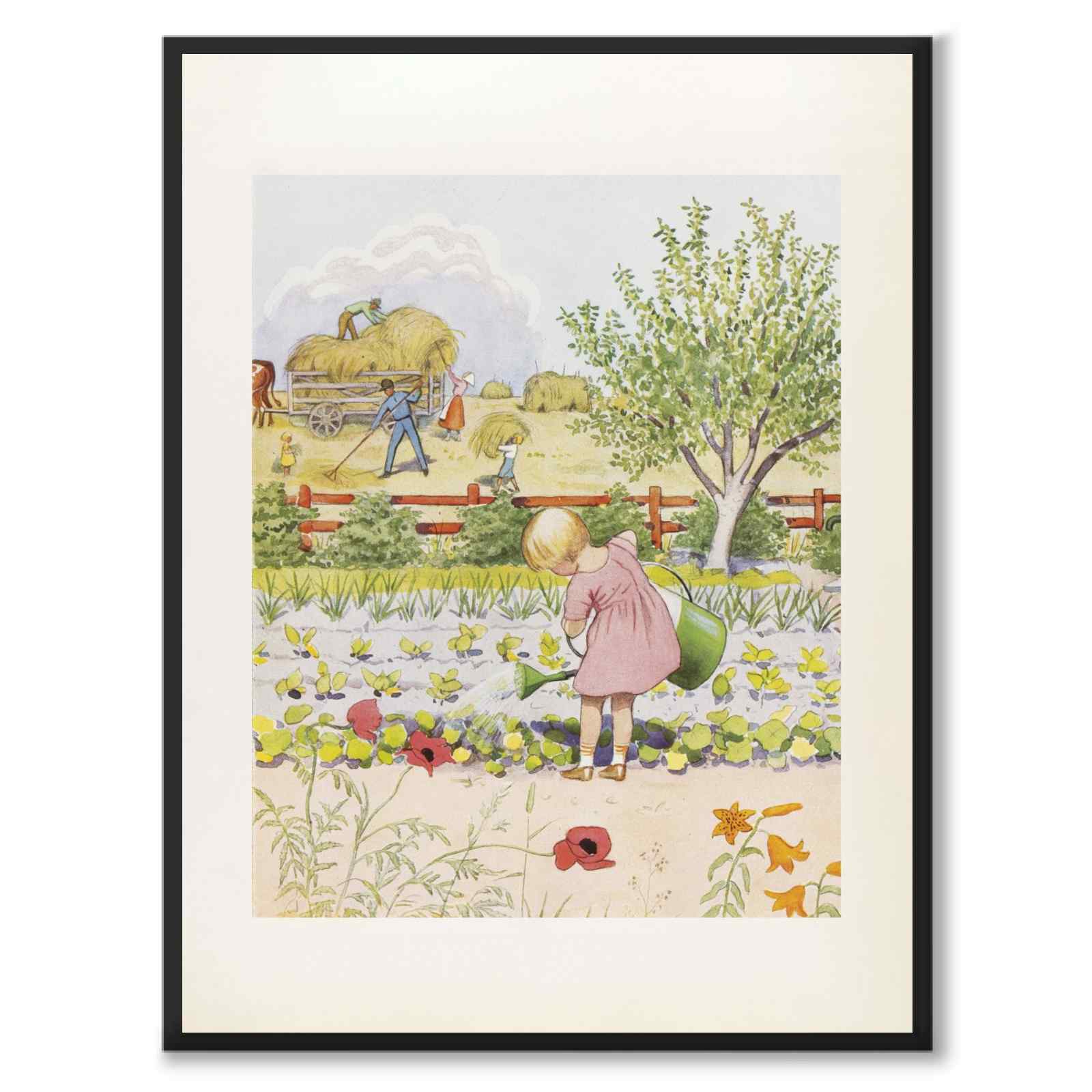En klassisk plakat illustrert av Elsa Beskow fra Årets saga i 1927 med motivet juli.