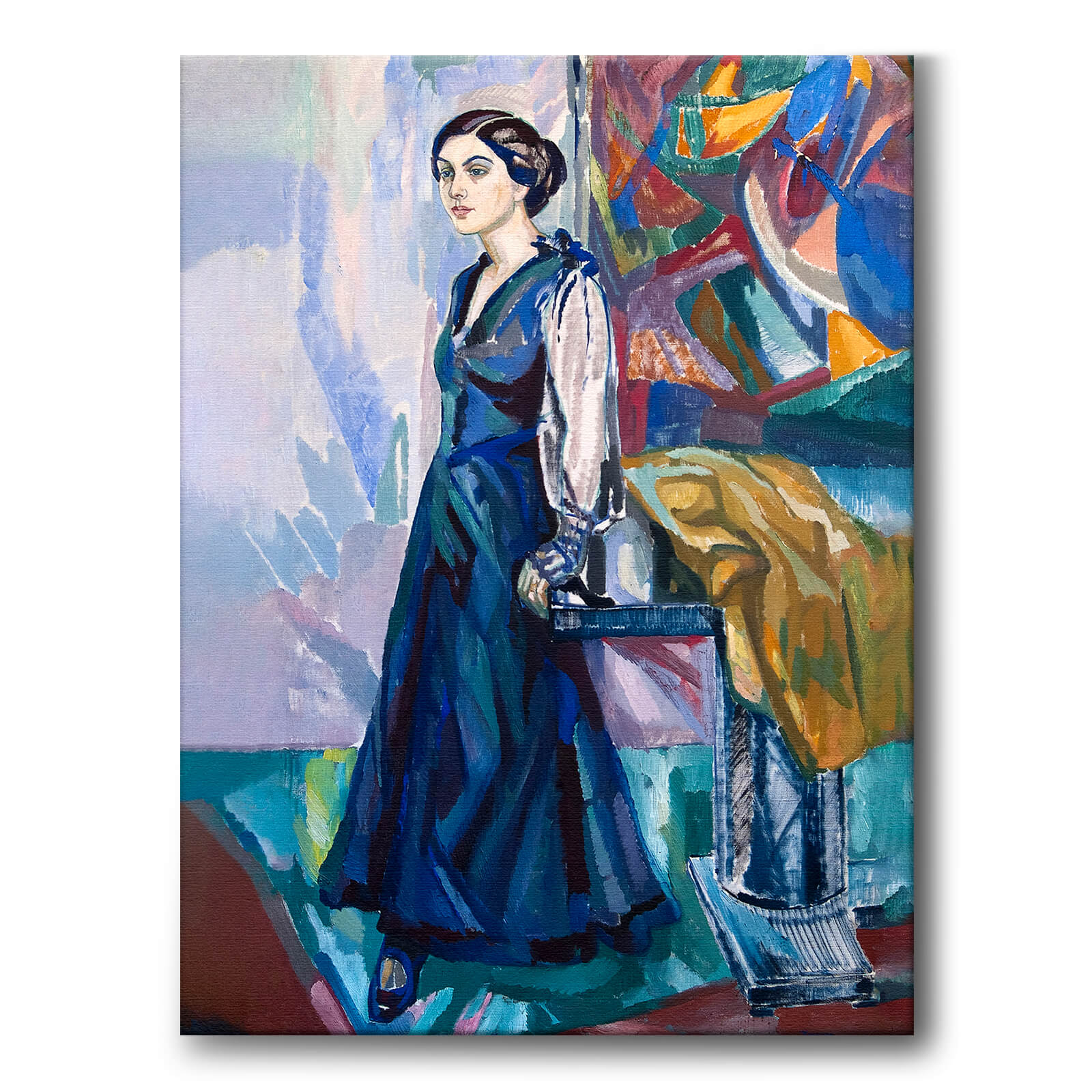Lerret med et fantastisk portrett i blåtoner av vakre Carin Östberg – datter av Sveriges, ved århundreskiftet, rikeste mann og hvis kunstsamling ble grunnlaget for Thielska galleriet; Ernest Jacques Thiel. Carin var godt kjent i Sverige, blant annet for sin far og for sin skjønnhet. Hun var blant annet gift med Ragnar Östberg, arkitekten som tegnet Rådhuset i Stockholm, og ble med ham mor til Susanna Ramel, som igjen giftet seg med den kjente musikeren Povel Ramel.