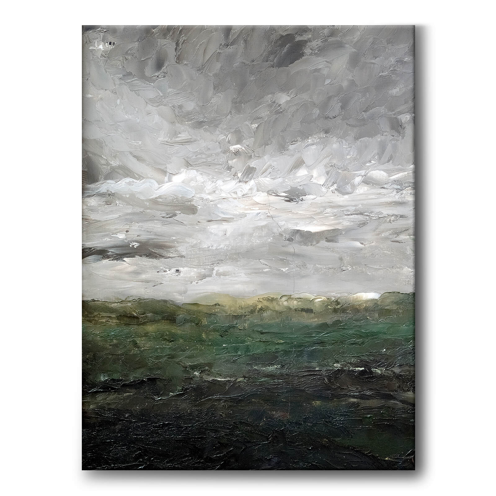 Lerret med maleriet Landskapsstudie - Heden av August Strindberg. På bildet ser vi en vakker, abstrakt lynghei med matte mørkegrønne farger under en grå himmel. Bildet har en fantastisk dybde som inviterer betrakteren.