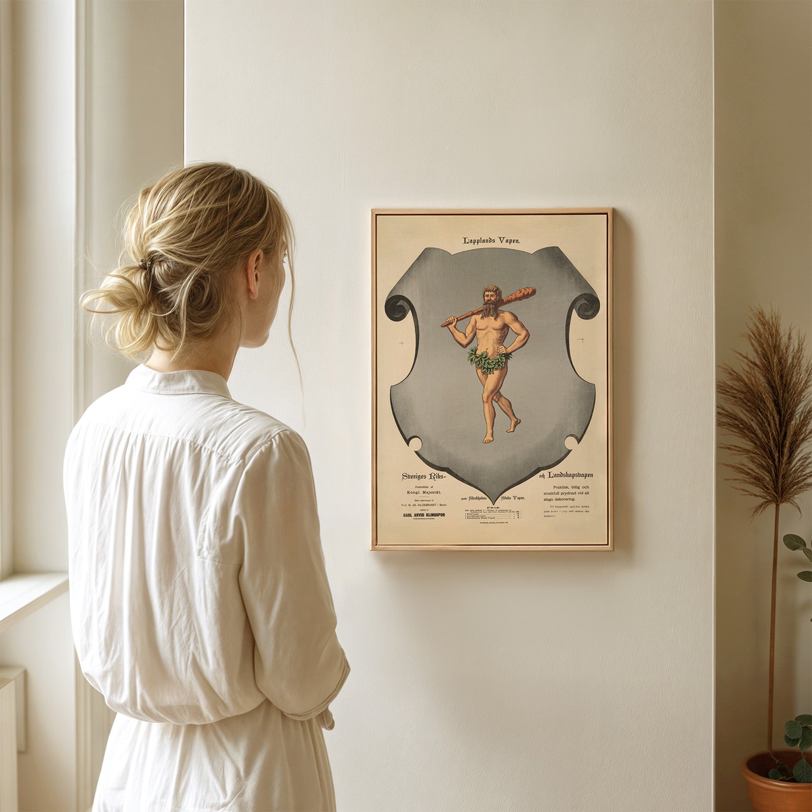 Lapplands regionale våpen er en uvanlig representasjon av et heraldisk. Den forestiller en vill mann, dekket av løv og bærer en kølle over skulderen. Villmannen som symbol på Lappland dukker først opp på et myntpar, utstedt på tidspunktet for Karl IXs kroning i 1607. Villmannen, som ofte er et trekk ved nordisk folklore, symboliserer villmarken og dens nådeløse natur samt menneskets ambisjon om å leve i harmoni med den.