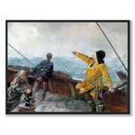 Plakat med det fengslende maleriet Leiv Eiriksson oppdager Amerika, laget i 1895 av Christian Krohg.