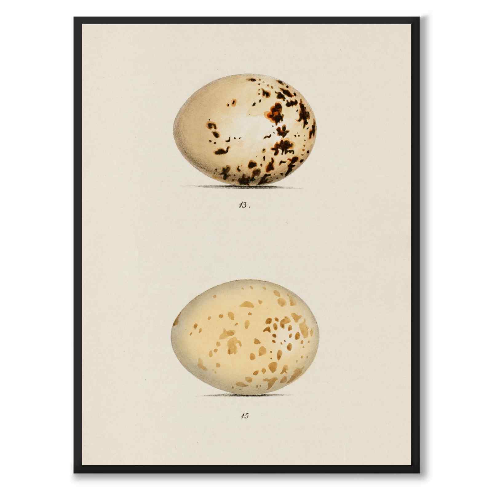 Plakat med en illustrasjon av Henry Leonard Meyer, en britisk ornitolog og kunstner, kjent for sine detaljerte illustrasjoner av britiske fugler og eggene deres. Meyer ble født på slutten av 1700-tallet og utviklet senere en lidenskap for naturen, spesielt ornitologi, som er studiet av fugler. I løpet av 1800-tallet, en periode da naturhistoriske studier var i sin storhetstid og innsamling og kategorisering av prøver var avgjørende for vitenskapelige gjennombrudd, ble hans arbeid av stor betydning innen ornitologi.