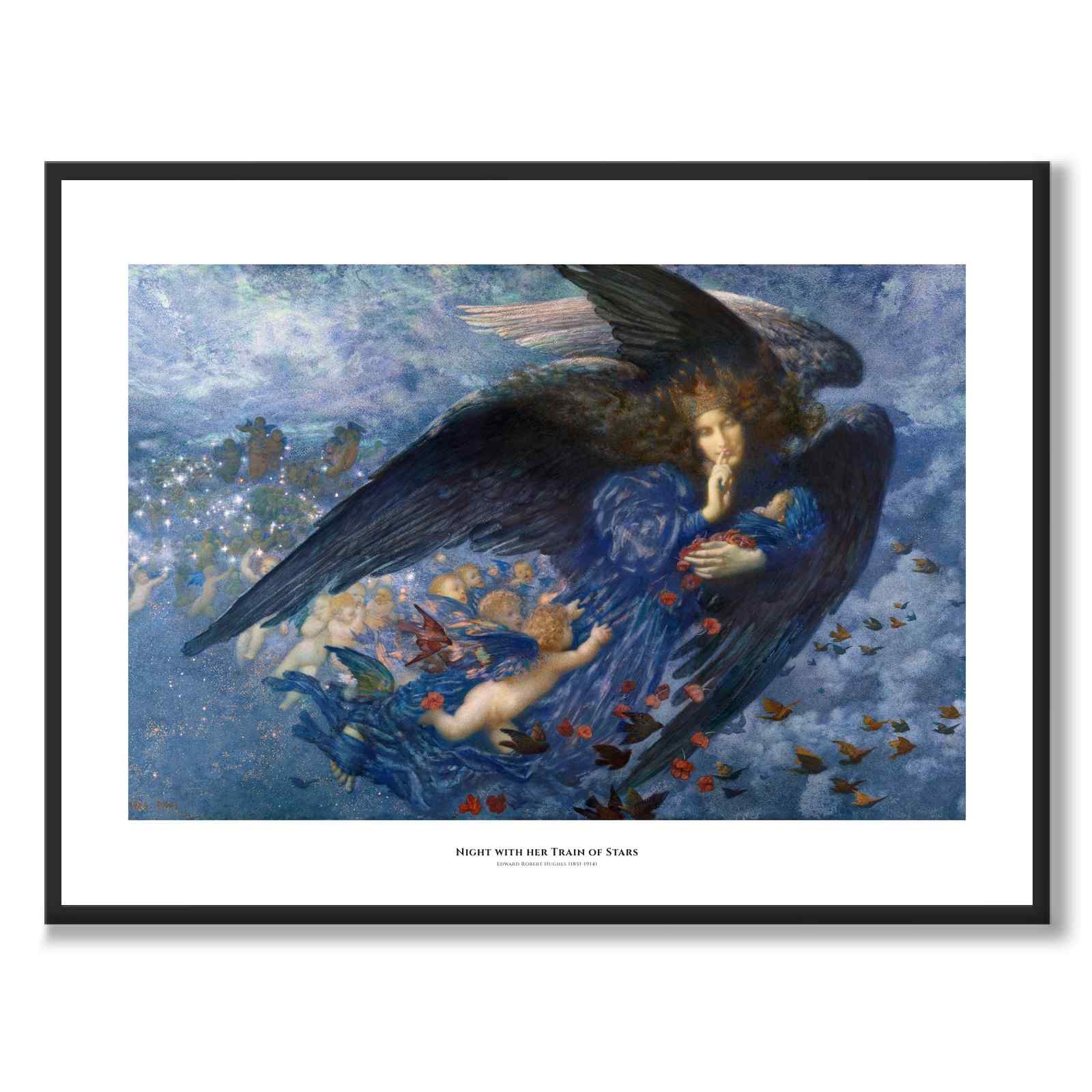 Plakat med det fantastiske maleriet Night with her Train of Stars fra 1912. Maleriet er laget av Edward Robert Hughes som var en britisk maler. Hughes laget hovedsakelig akvareller, men også noen oljemalerier.