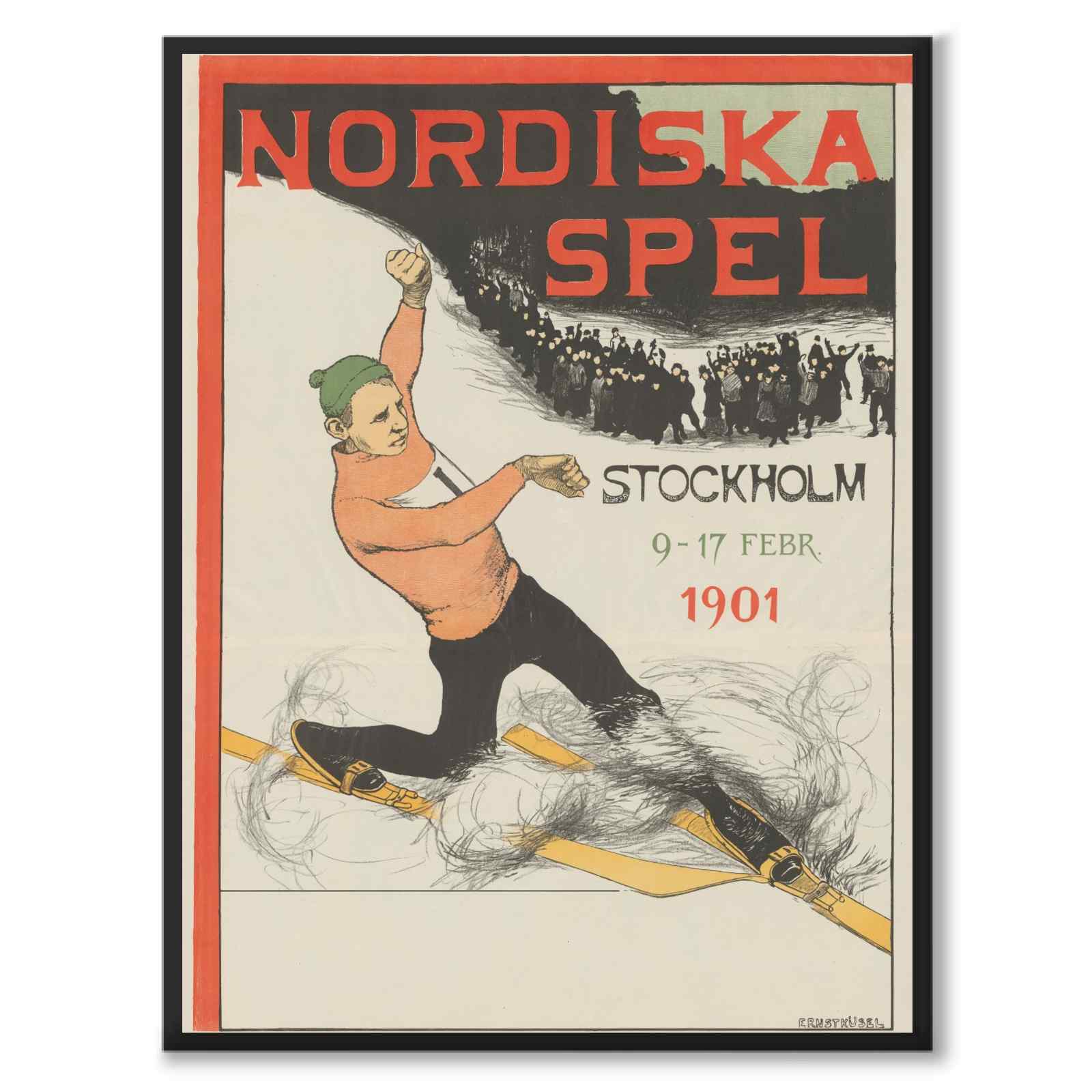 Plakat med plakat for Nordic Games i 1901. Illustrasjonen er laget av den svenske kunstneren Ernst Nikolaus Küsel (1873-1942).
