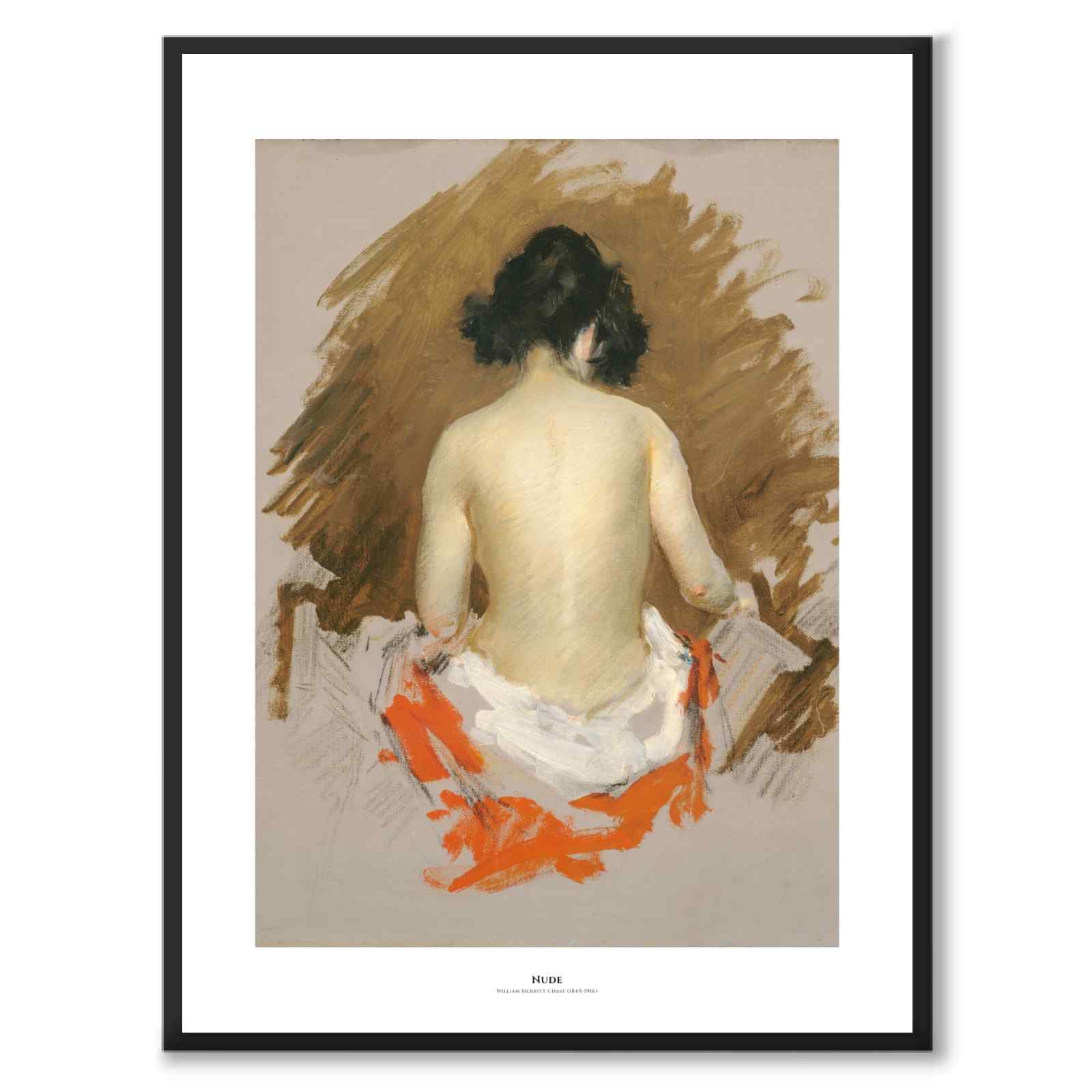 Plakat med det fantastiske maleriet Nude, laget i 1901 av den amerikanske kunstneren William Merritt Chase.