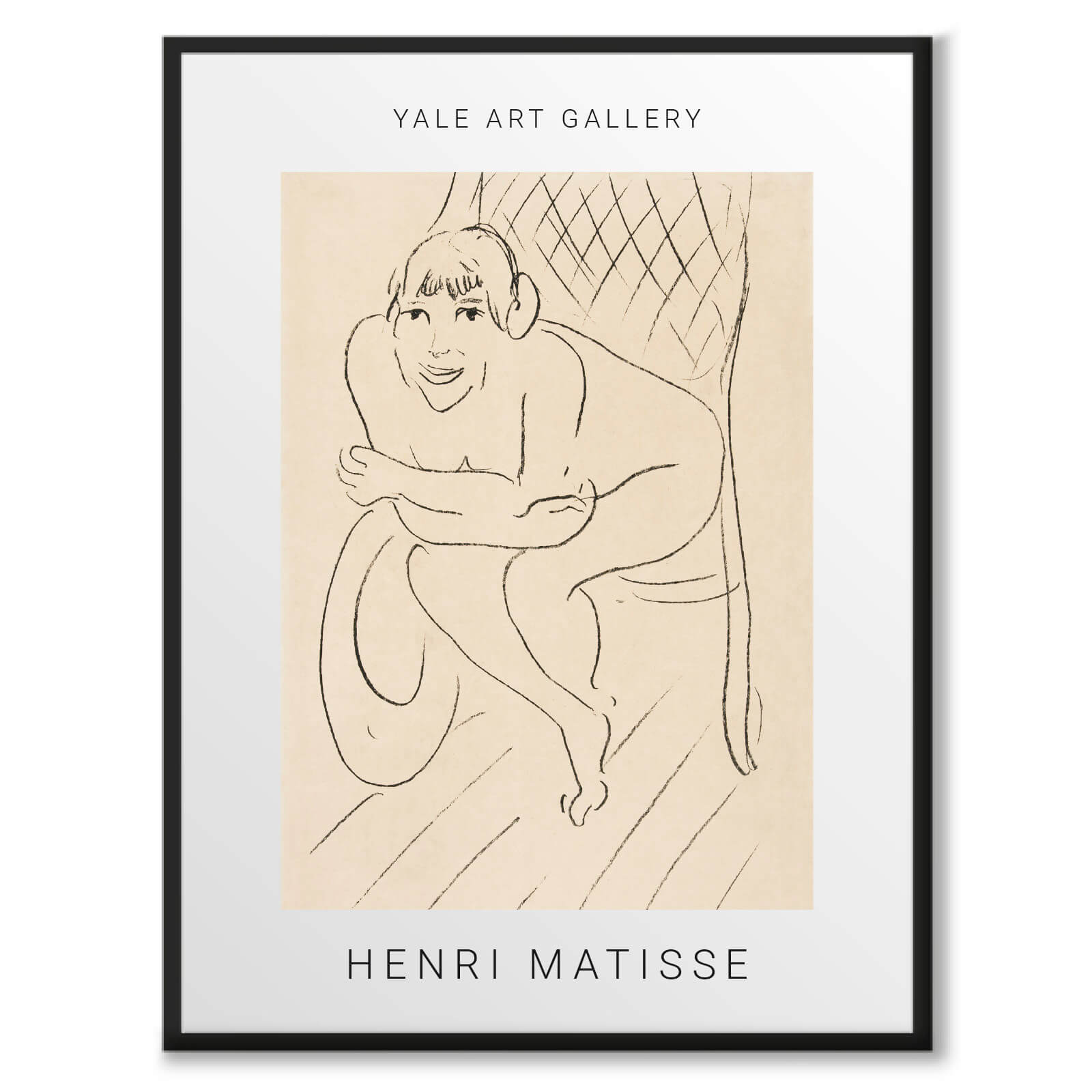 Plakat med en vintage nakenskisse av Henri Matisse. Motivet heter Nude Seated in a Rocking Chair (1914). Originalen er på Yale University Art Gallery.