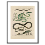 Plakat med motiv av den vitenskapelige illustrasjonen Ok Naturalia skapt av den tyske naturviteren Lorenz Oken på 1800-tallet. På bildet ser vi flere forskjellige typer slanger og øgler.