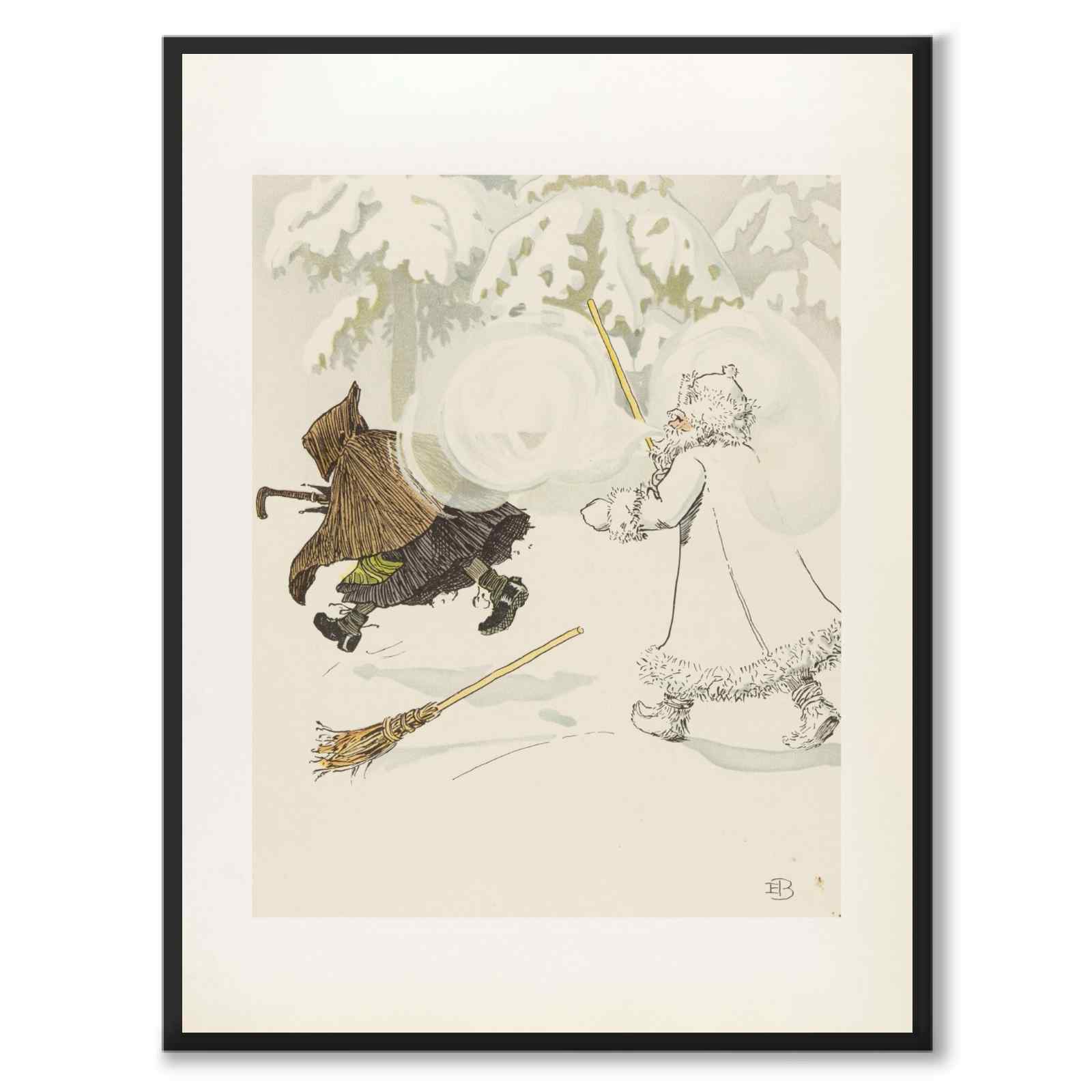 Plakat med magisk illustrasjon fra Elsa Beskows eventyr Olles skidfärd, som ble publisert for første gang år 1907.