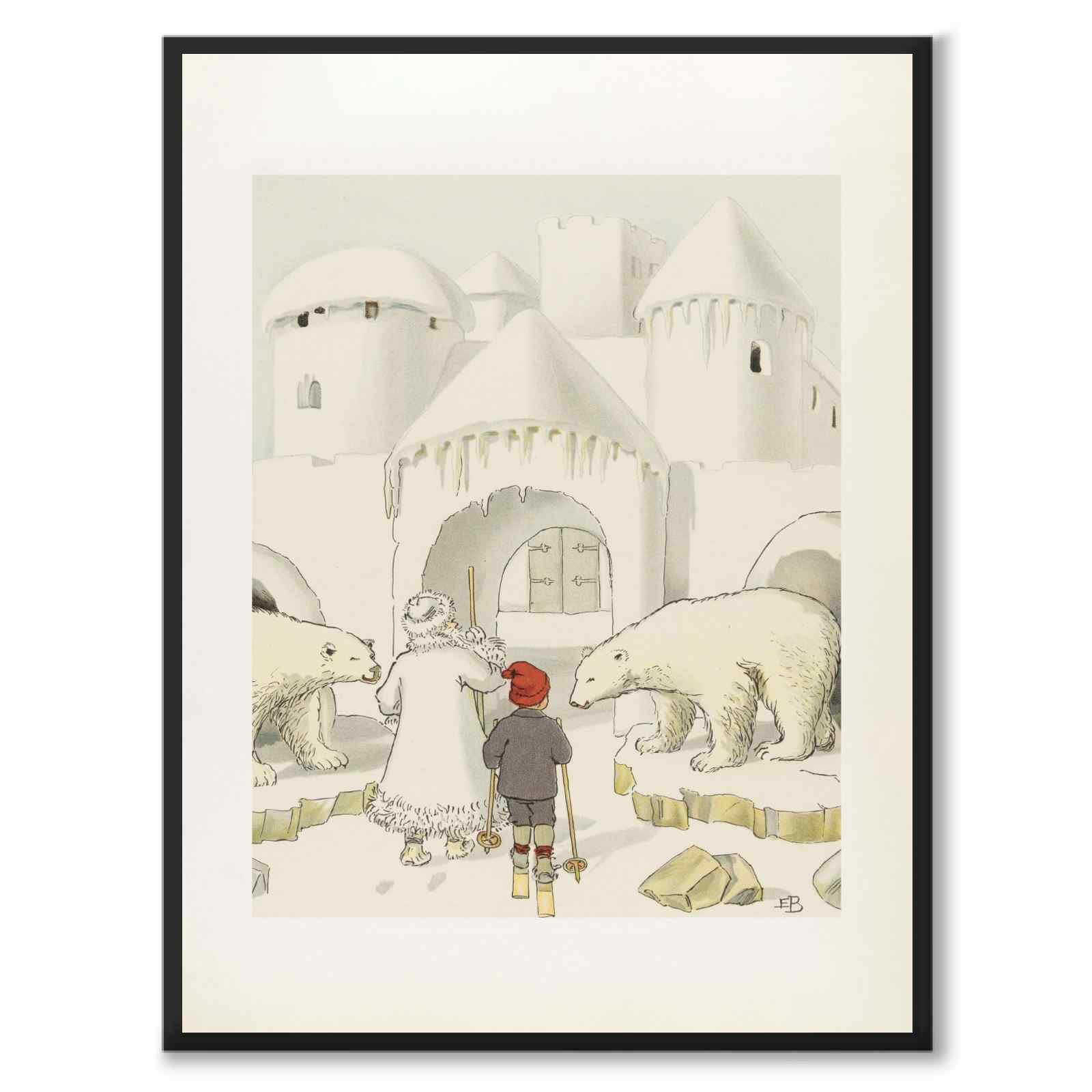 Dette motivet viser Olle bli ledet av Onkel Rimfrost til et imponerende isslott, bevoktet av store isbjørner. Slottet er vinterens magiske rike der kong vinter bor.