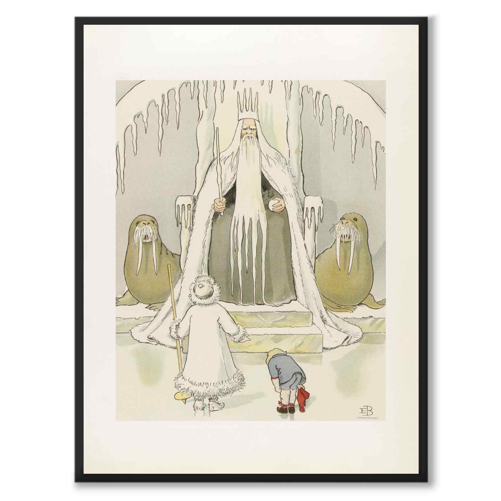 I dette motivet ser vi Olle og Onkel Rimfrost foran den mektige kong Bore, også kalt kong vinter, som sitter på sin trone omgitt av istapper og to enorme hvalrosser. Kong Bore, vinterens hersker, er et symbol på vinterkulde og autoritet. Olle bøyer seg ydmykt for ham, viser respekt og underkastelse til vinterens makt.