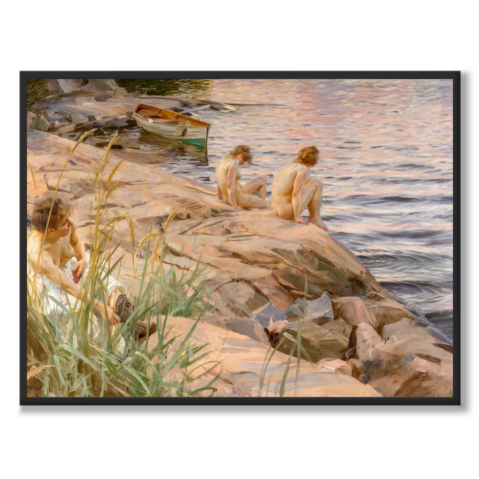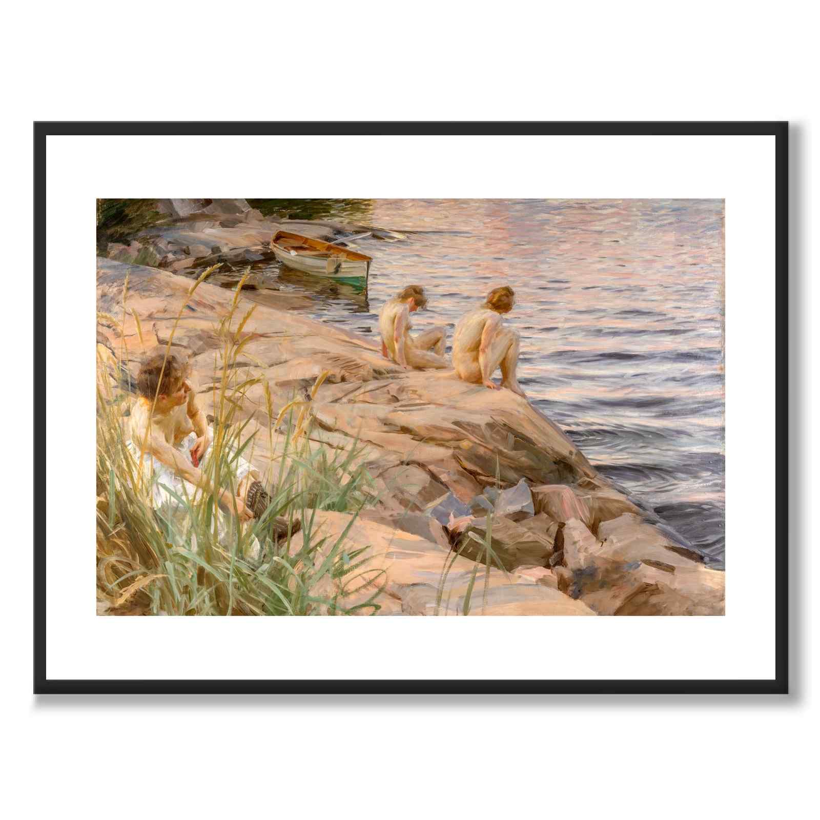 Plakat med maleriet Outdoors av Anders Zorn fra 1888. Den svenske tittelen på maleriet er Ute og viser tre nakne kvinner som sitter på en klippe i Dalarö, Stockholm i vannkanten.