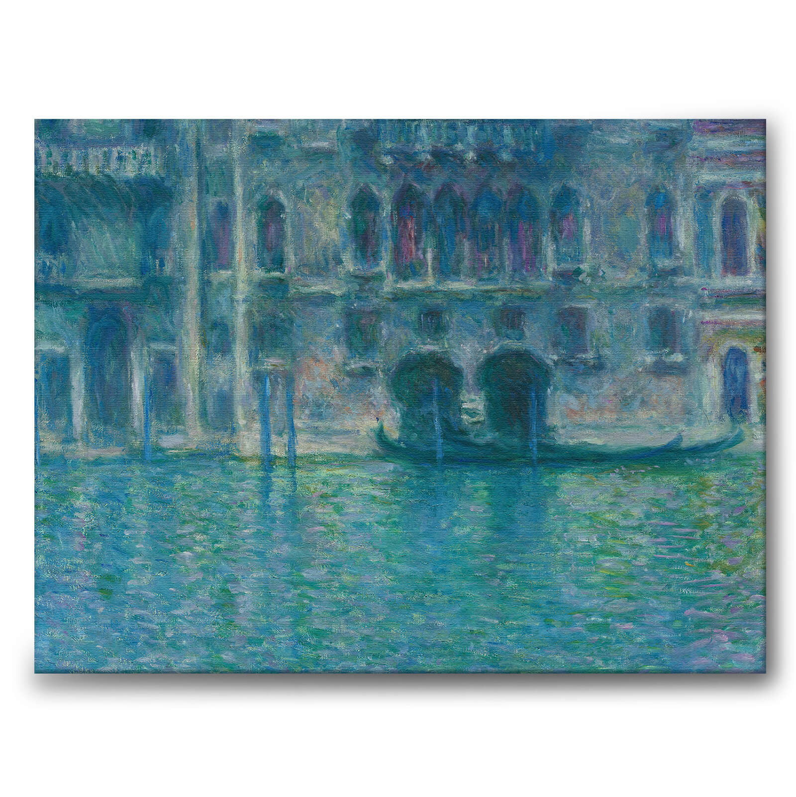 Vakkert lerretsmaleri med et maleri av den franske kunstneren Claude Monet. Emnet for maleriet er av Palazzo da Mula Morosini , som ligger ved Canal Grande og malt av Monet under hans reise til Venezia i 1908.