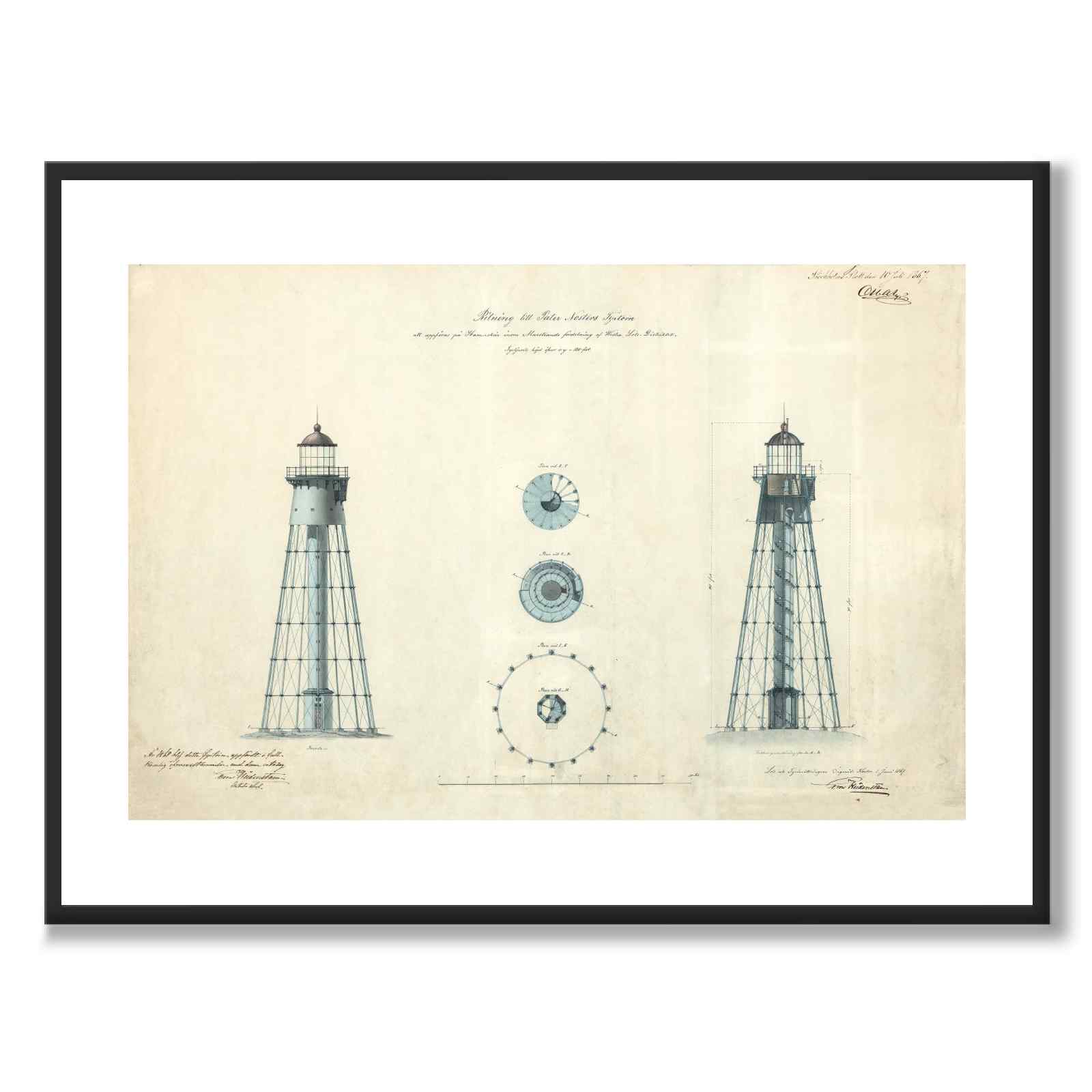 Tegningen er signert på Stockholms slott 10. juli 1867. Den er også signert på Lots- og Fyrinrätningens Ingenjör-kontor juni 1867. Nederst til venstre ser vi også teksten: " I 1868 ble dette fyret reist i fullkommenhet. i samsvar med denne tegning. signert av V von Heidenstam arbeidsleder" .