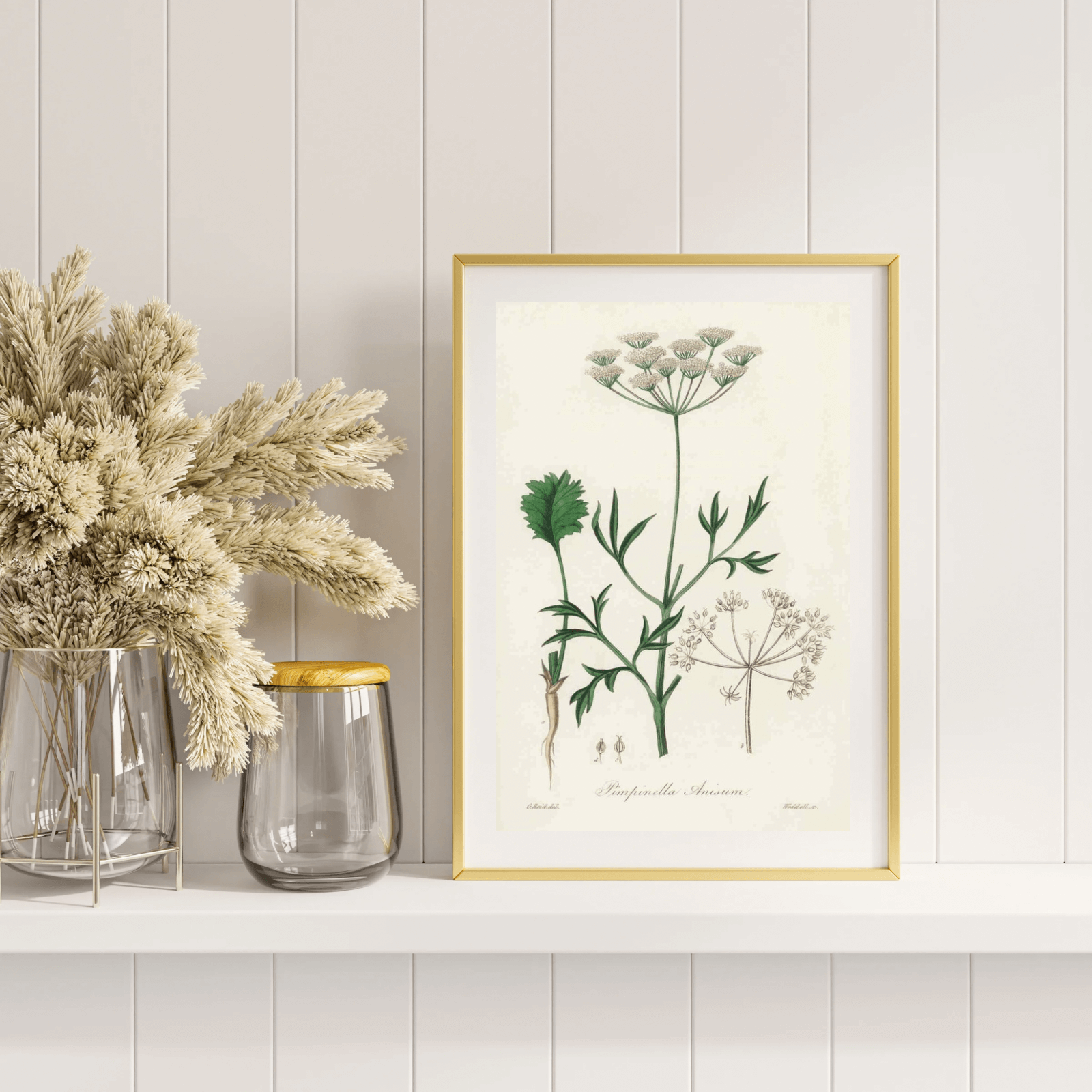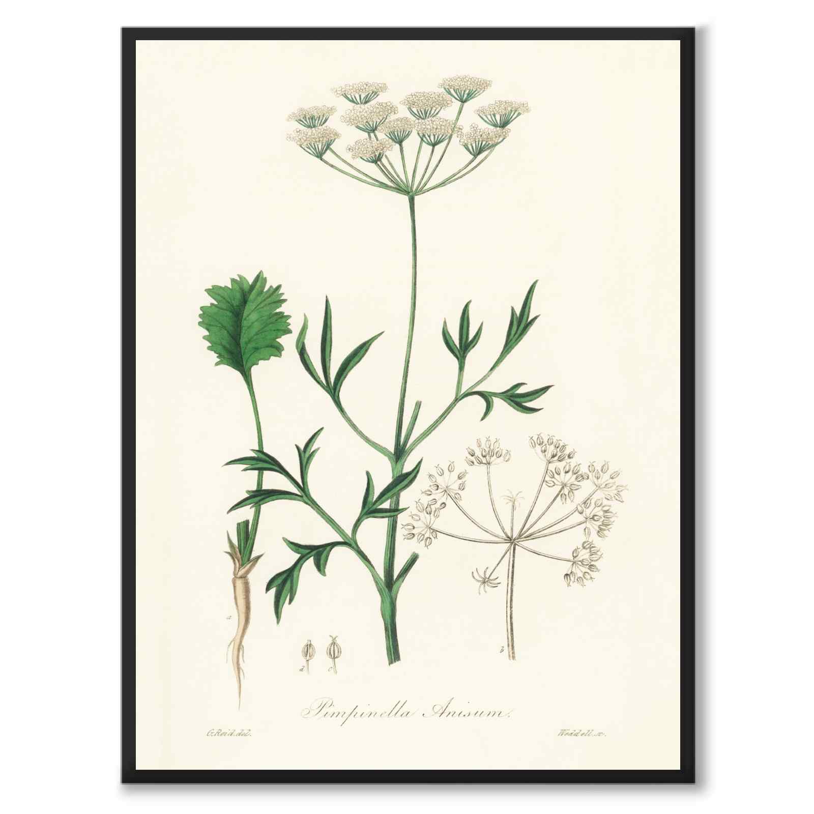 Plakat med motiv av illustrasjonen Pimpinella anisum , også kjent som anis eller anisfrø.